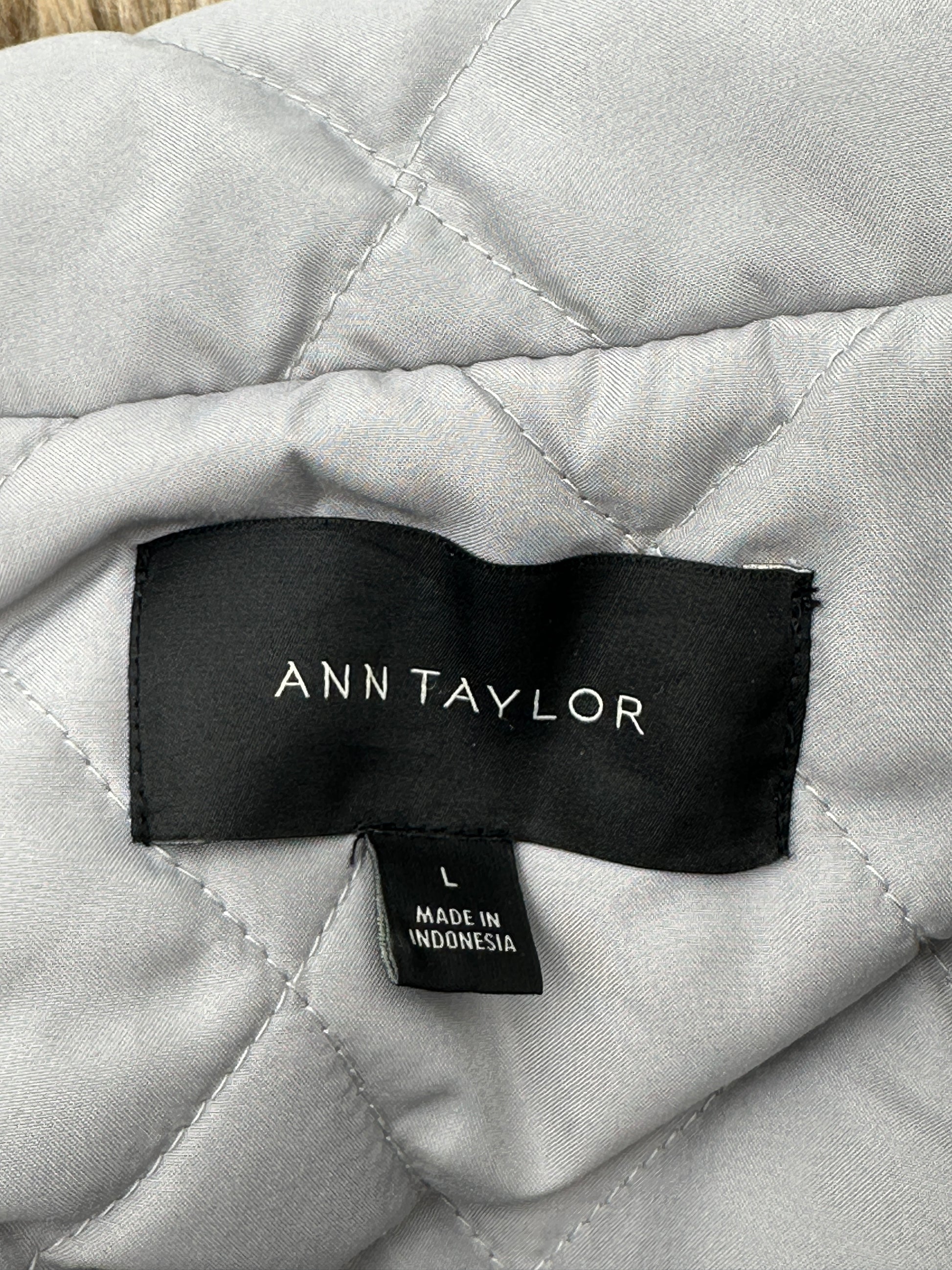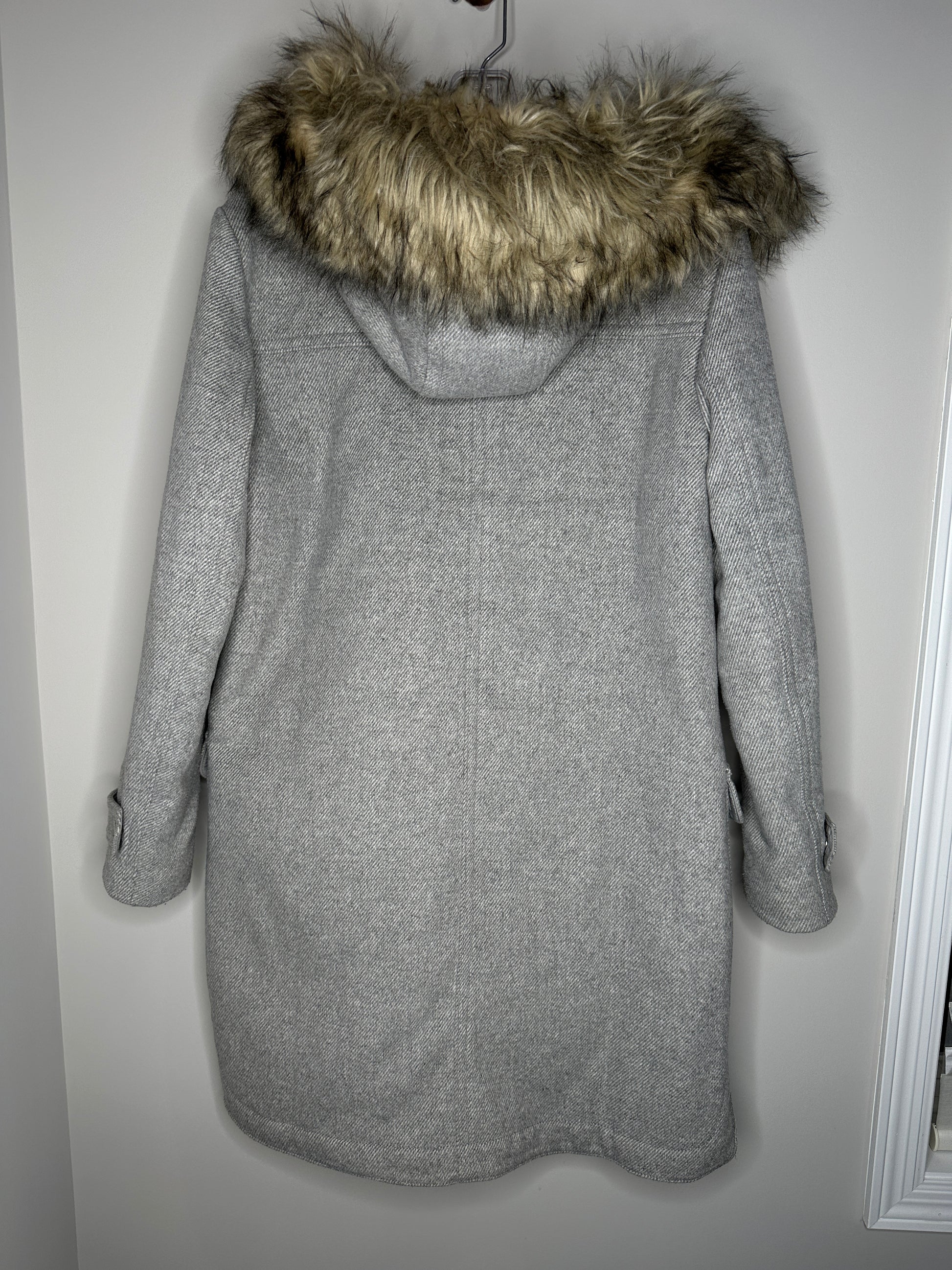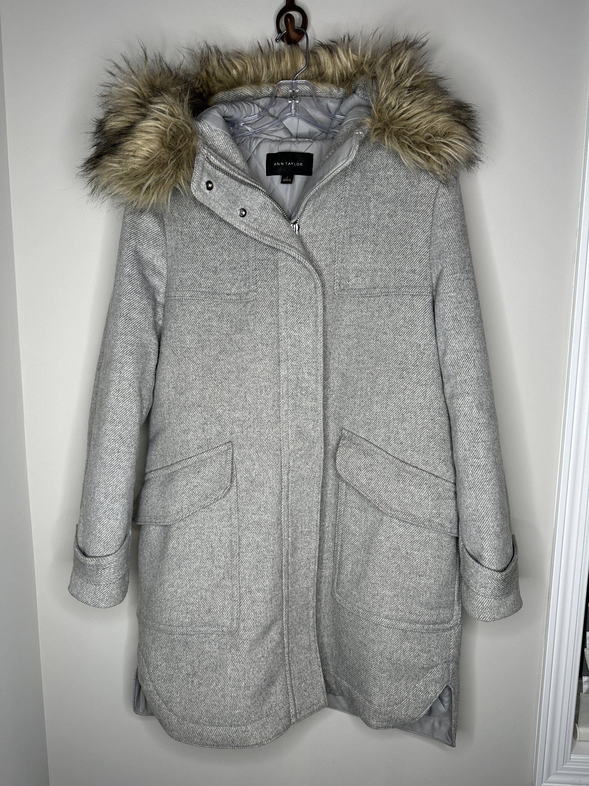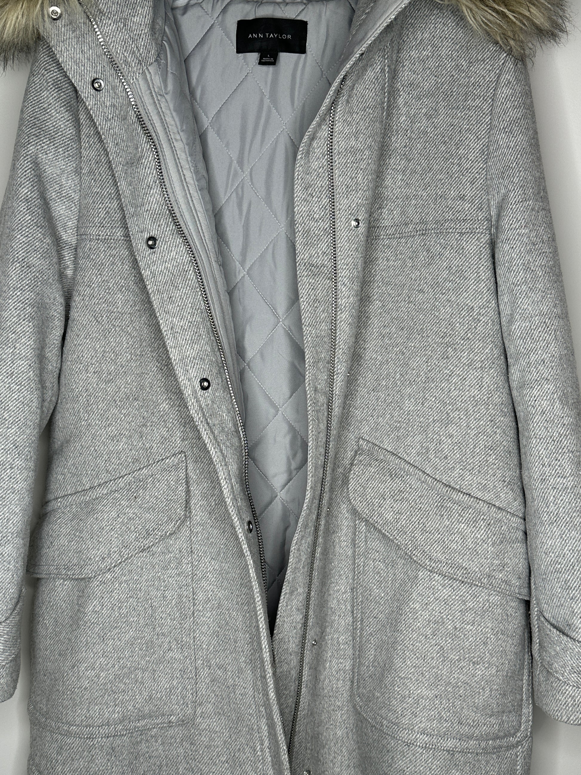 Ann Taylor Size L Light Gray Faux Fur Hooded Coat