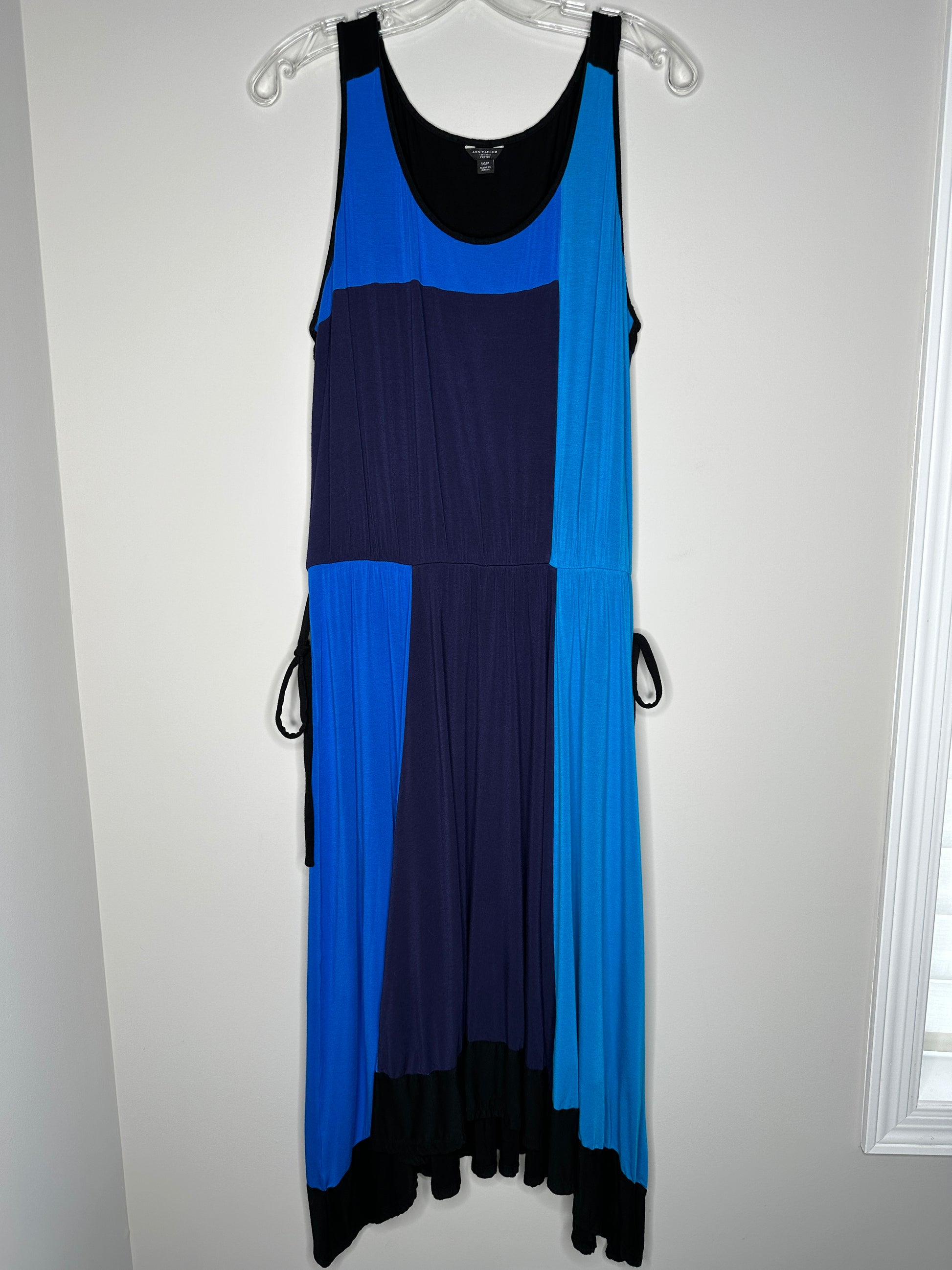 Ann Taylor Size 14P Blue Color Block Sleeveless Tank Dress w/Shark Bite Hem