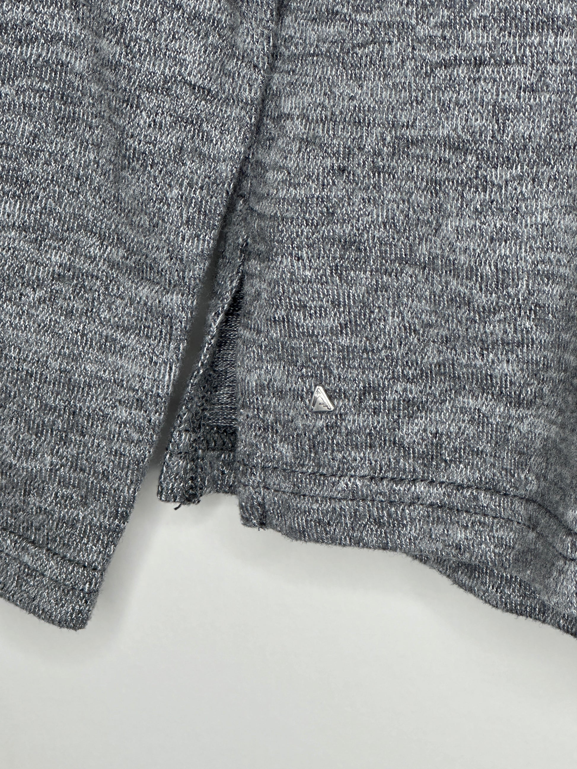 Description : In a soft fabric with a lined hood, grommets at the v-neck, stitched Vikings logo at the left chest, stitched stripes across the shoulders and on the arms, notches at either side of the bottom, a small metal logo at the right hem, and a bit of stretch