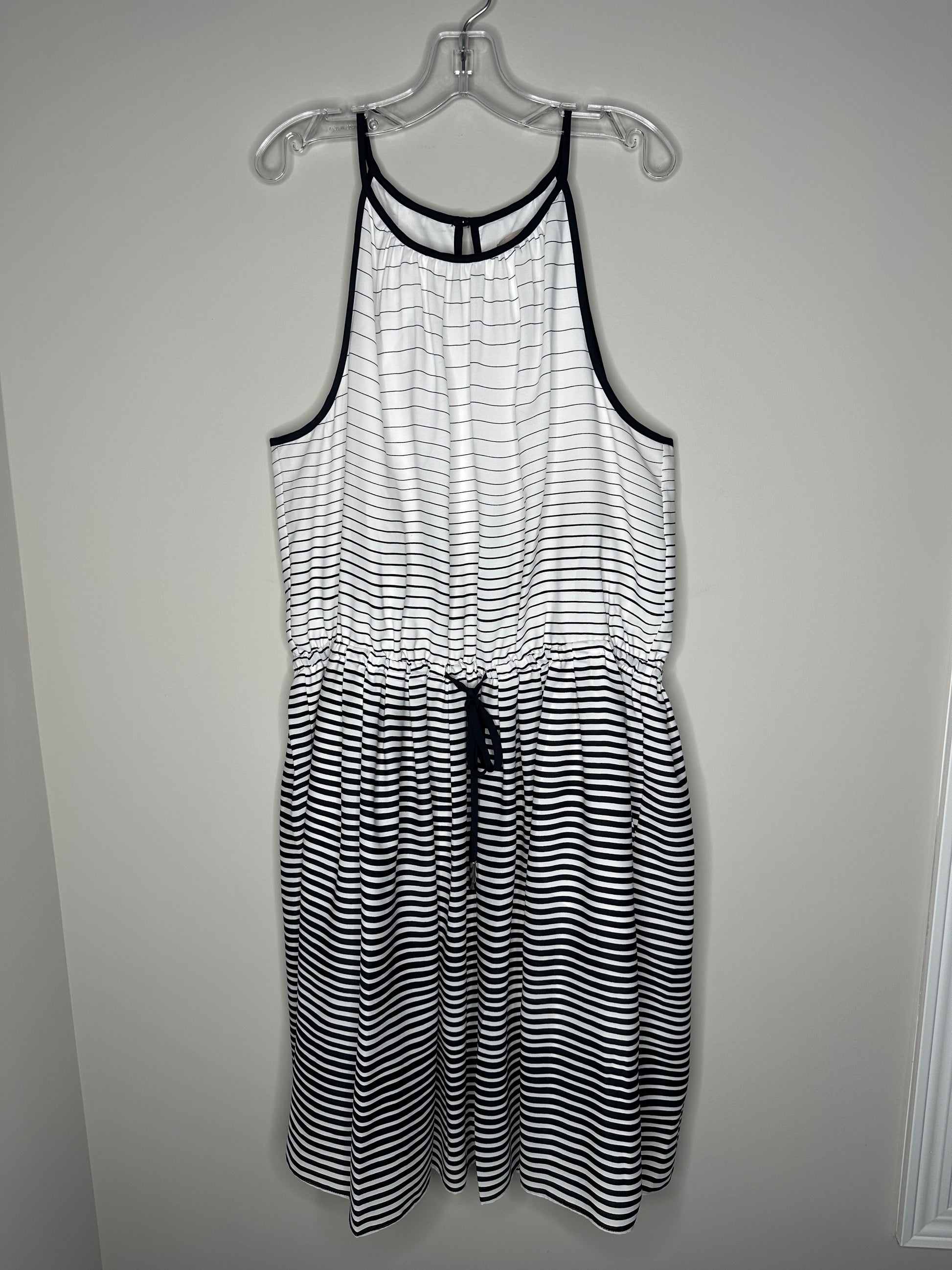 Banana Republic Size 14 White & Navy Blue Striped Sleeveless A-Line Dress