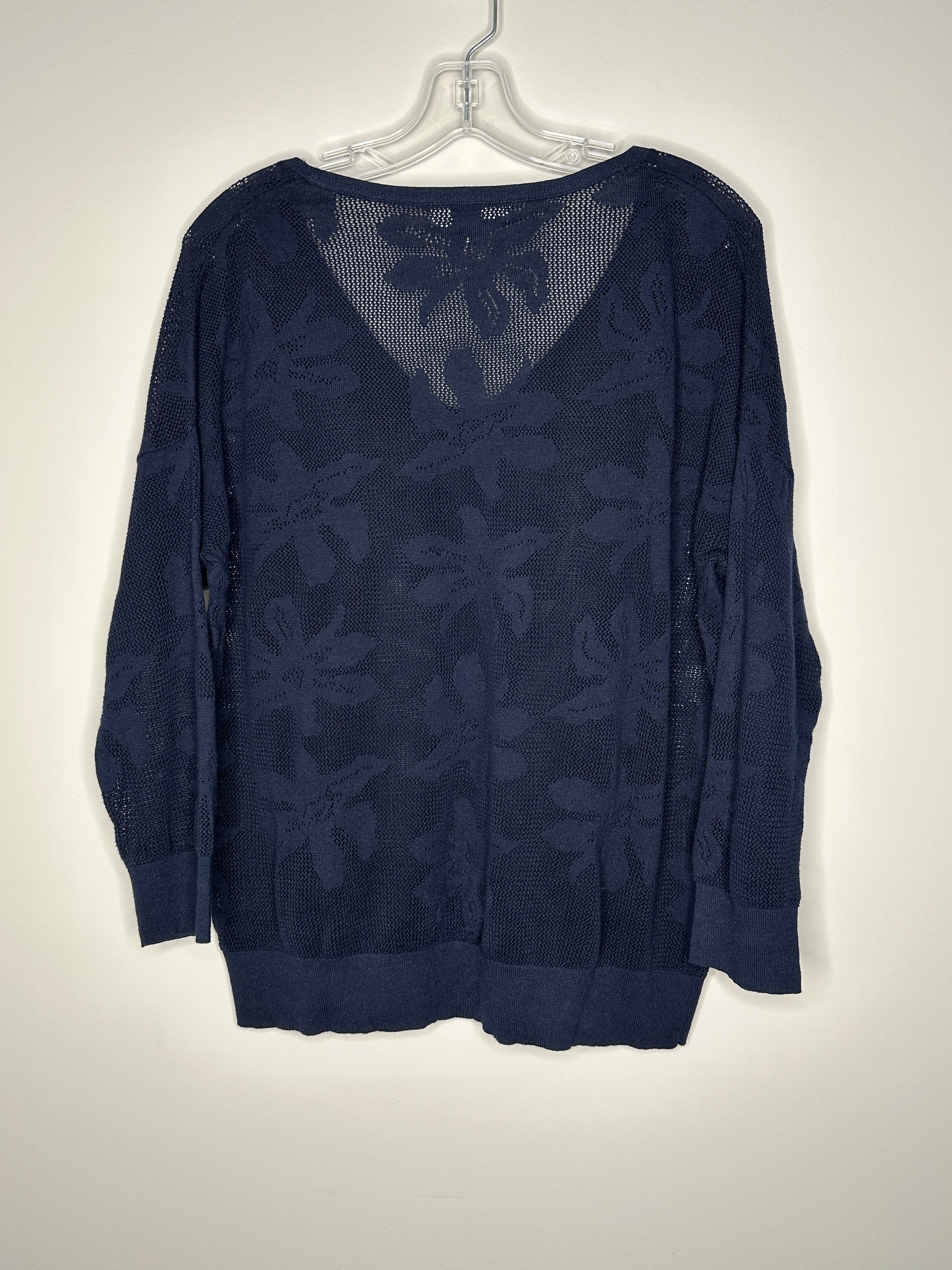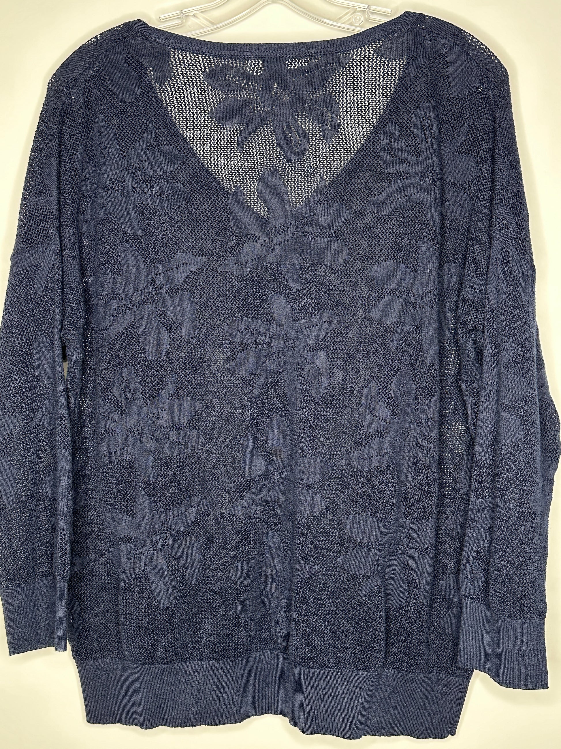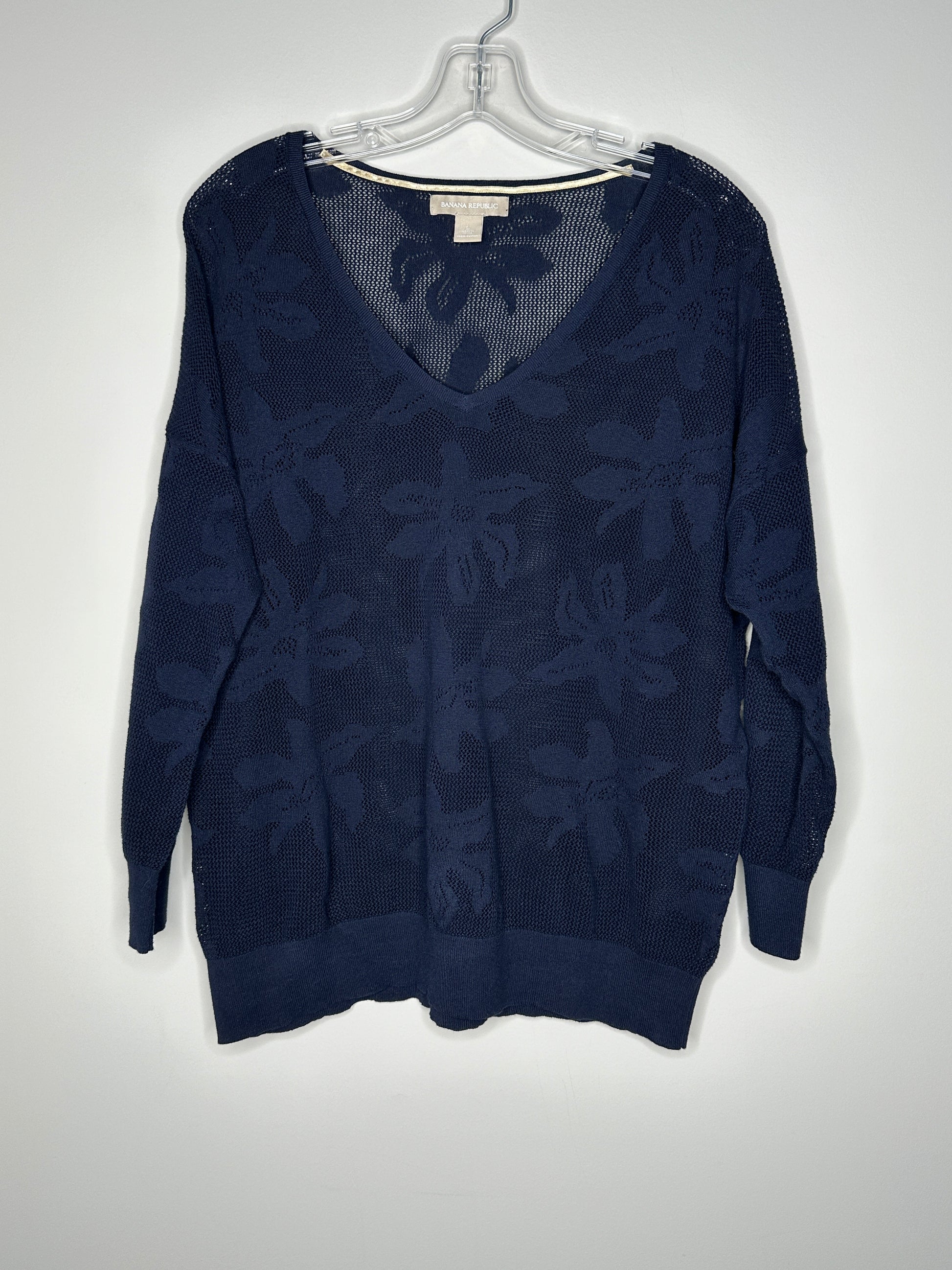 Banana Republic Size L Navy V-Neck 3/4 Sleeve Semi-Sheer Sweater
