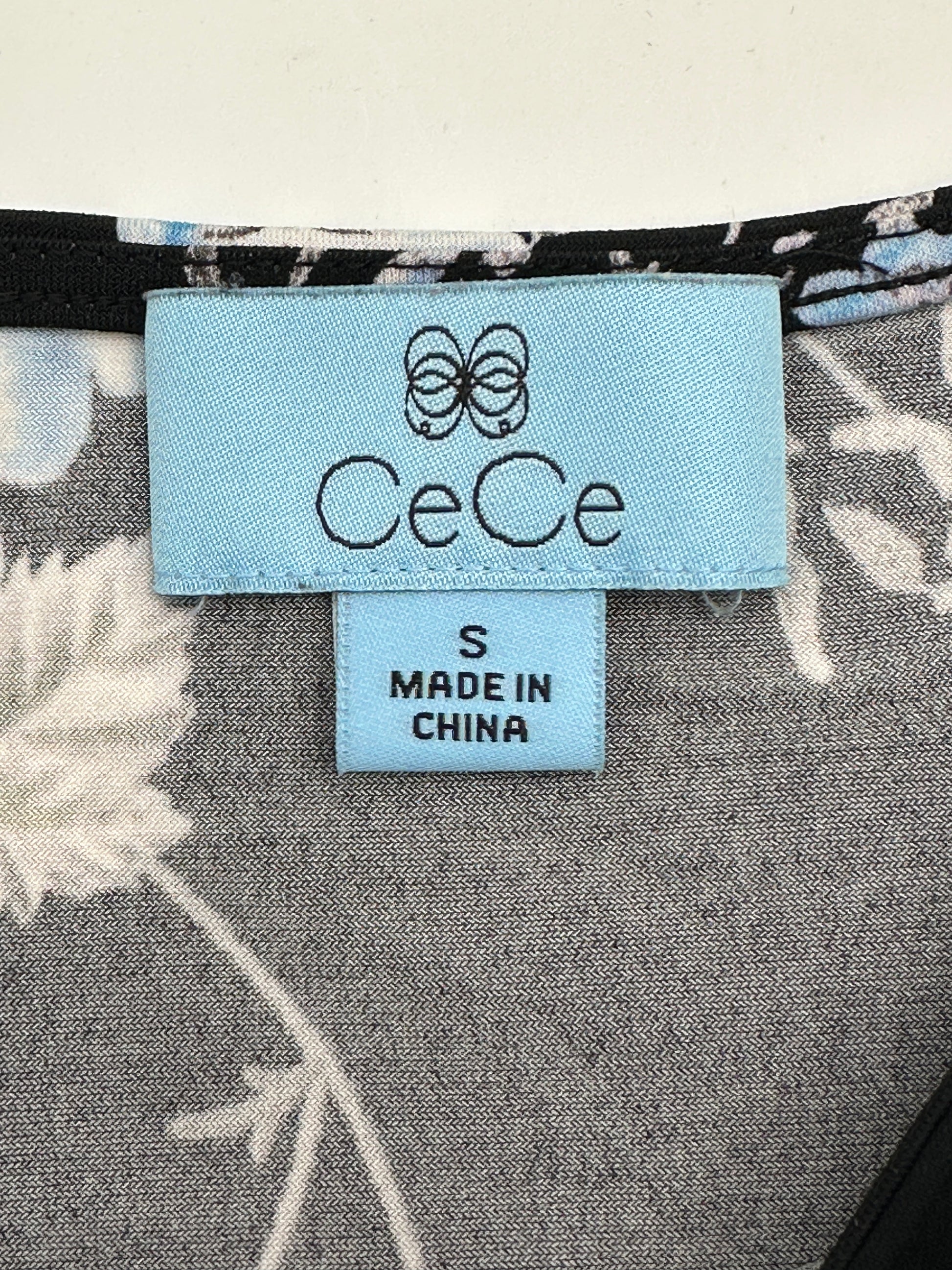 CeCe Size S Black Floral Print 3/4 Ruffle Sleeve Blouse