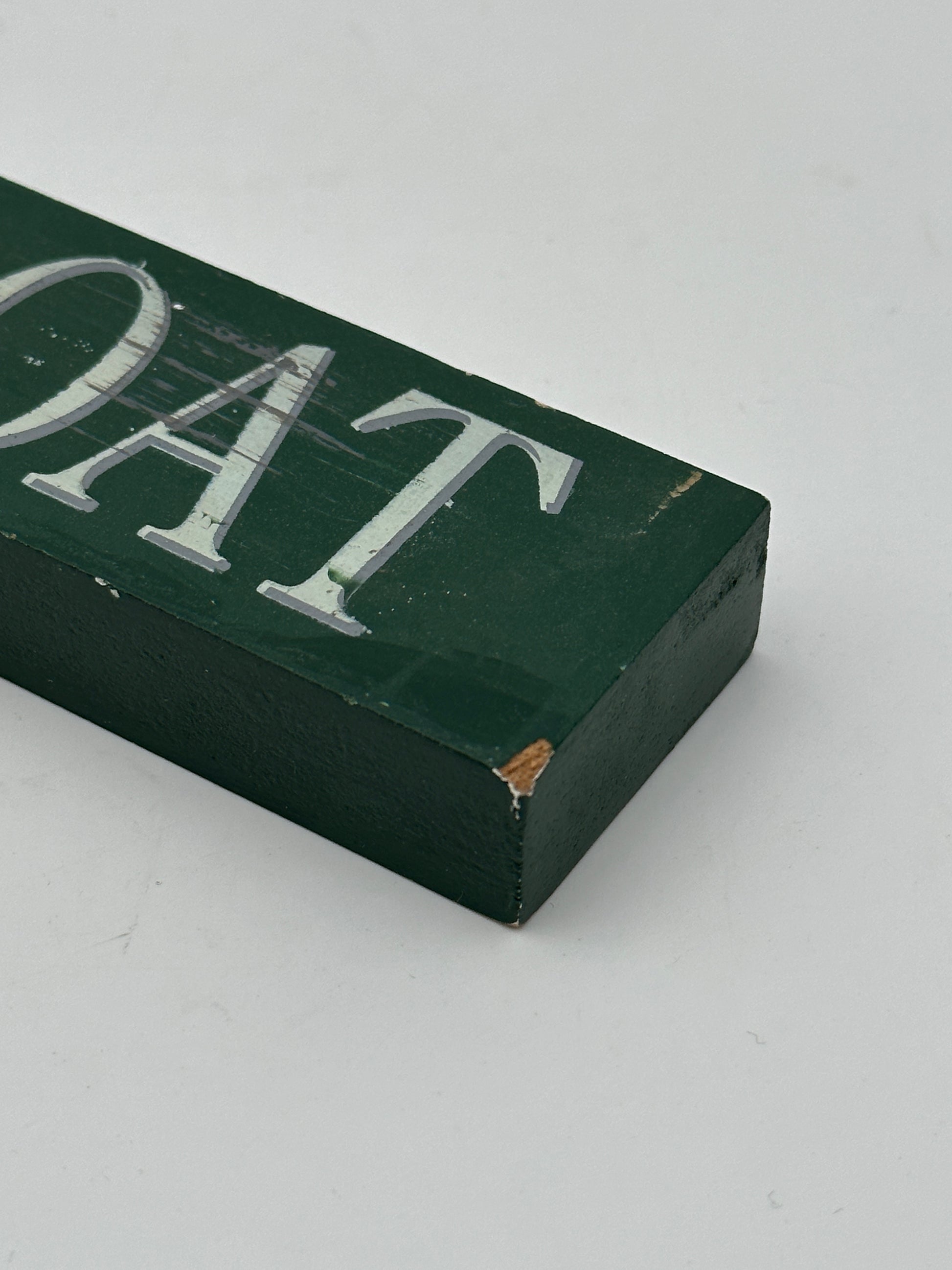 Description : Set on a shelf, desk, or add a hanger for the wall, with a distressed look, measures approx. 18" W, 1.5" H, 0.75" D, for the avid boater, makes a great gift. Priced for wear at the bottom right corner