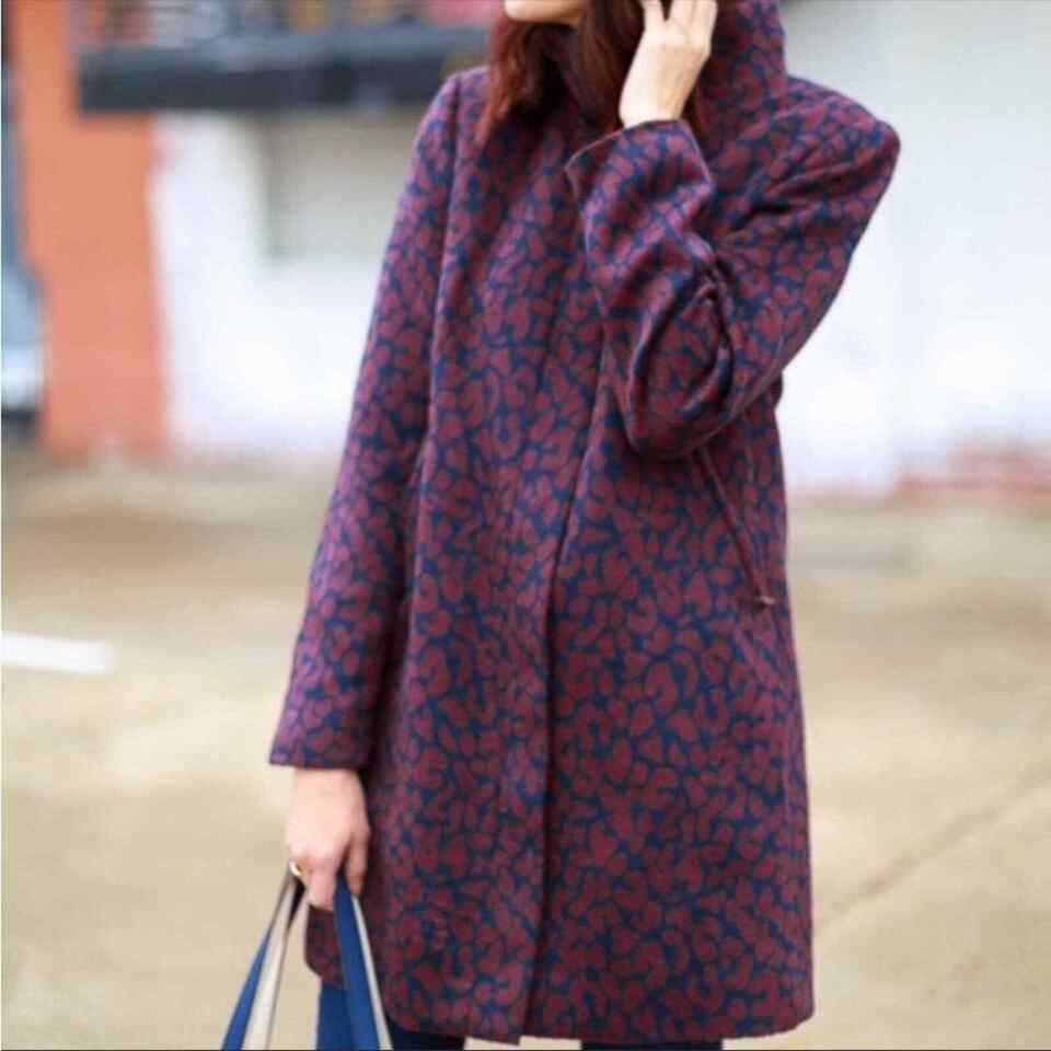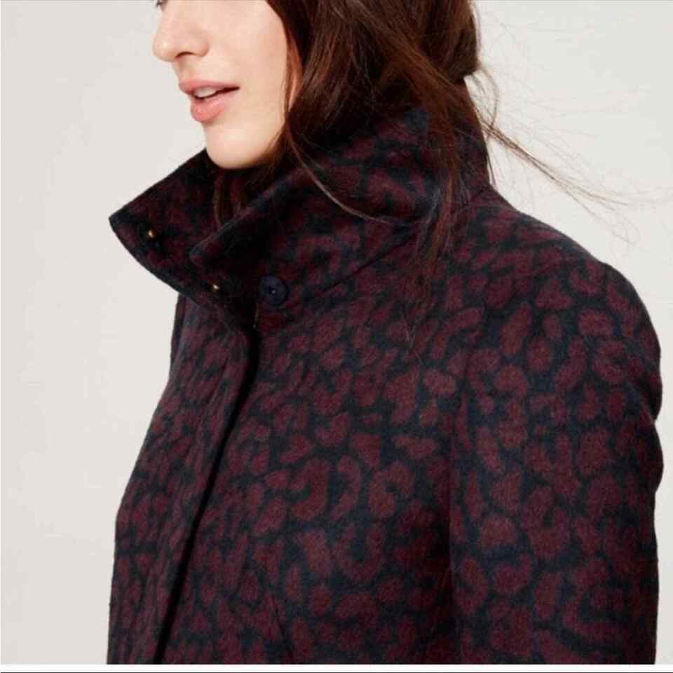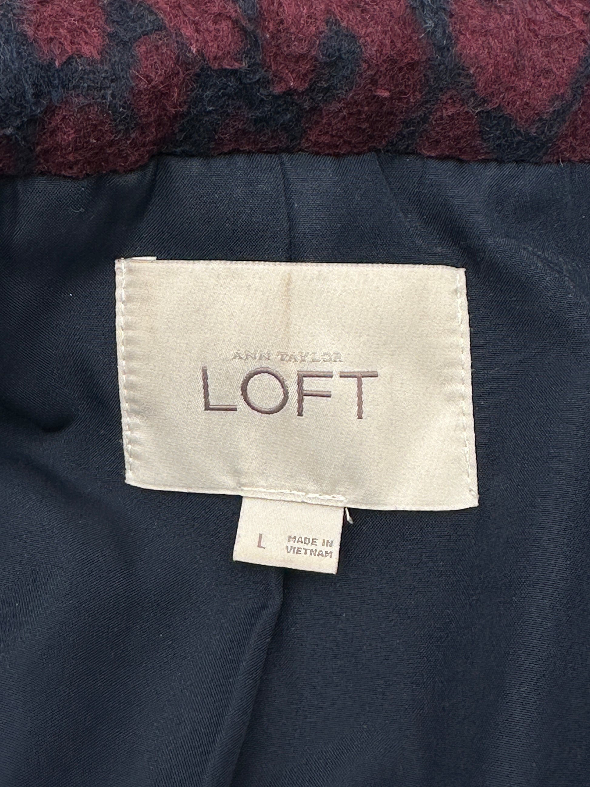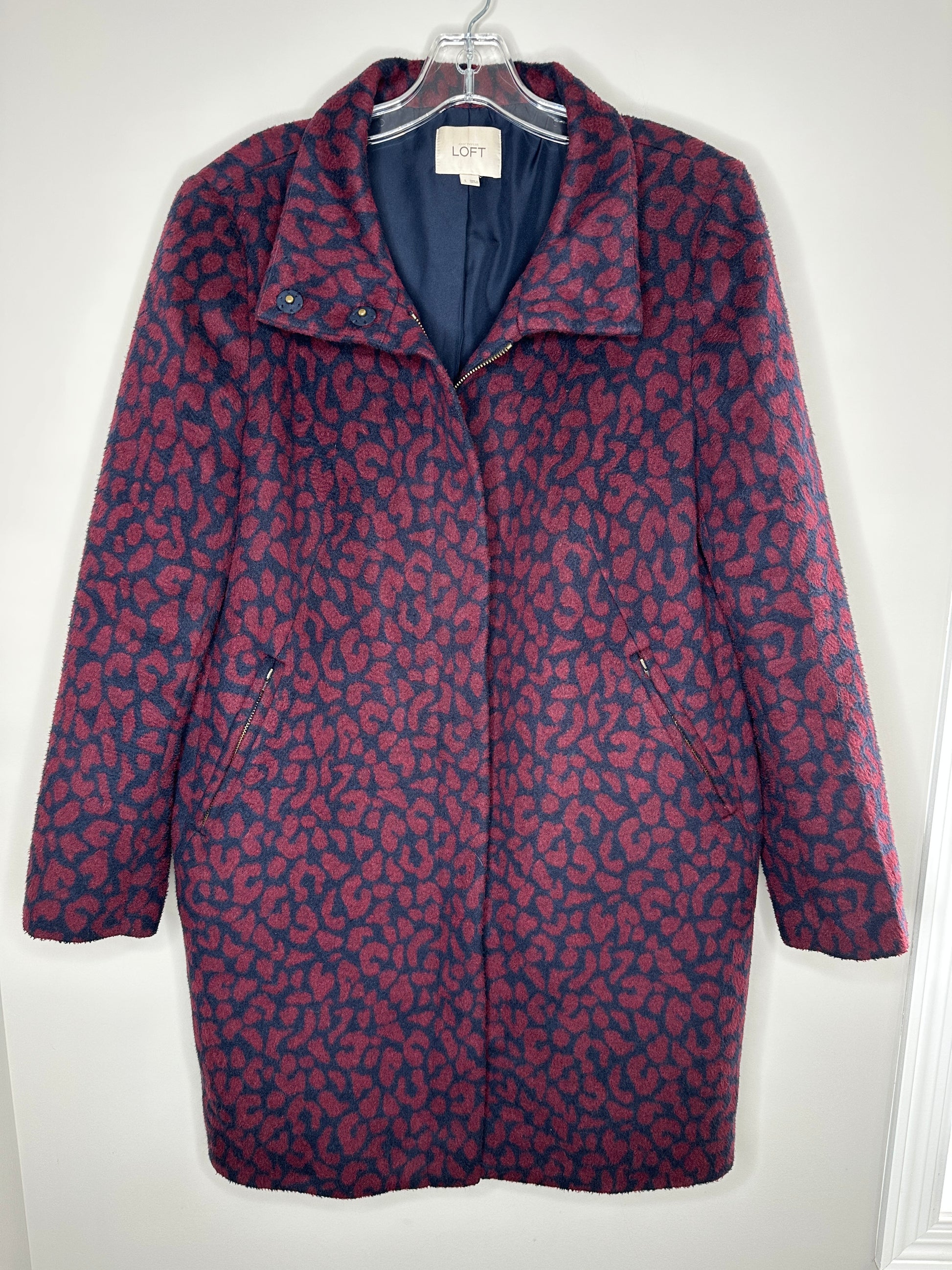 Ann Taylor LOFT Size L Navy Blue & Cranberry Cocoon-Style Coat