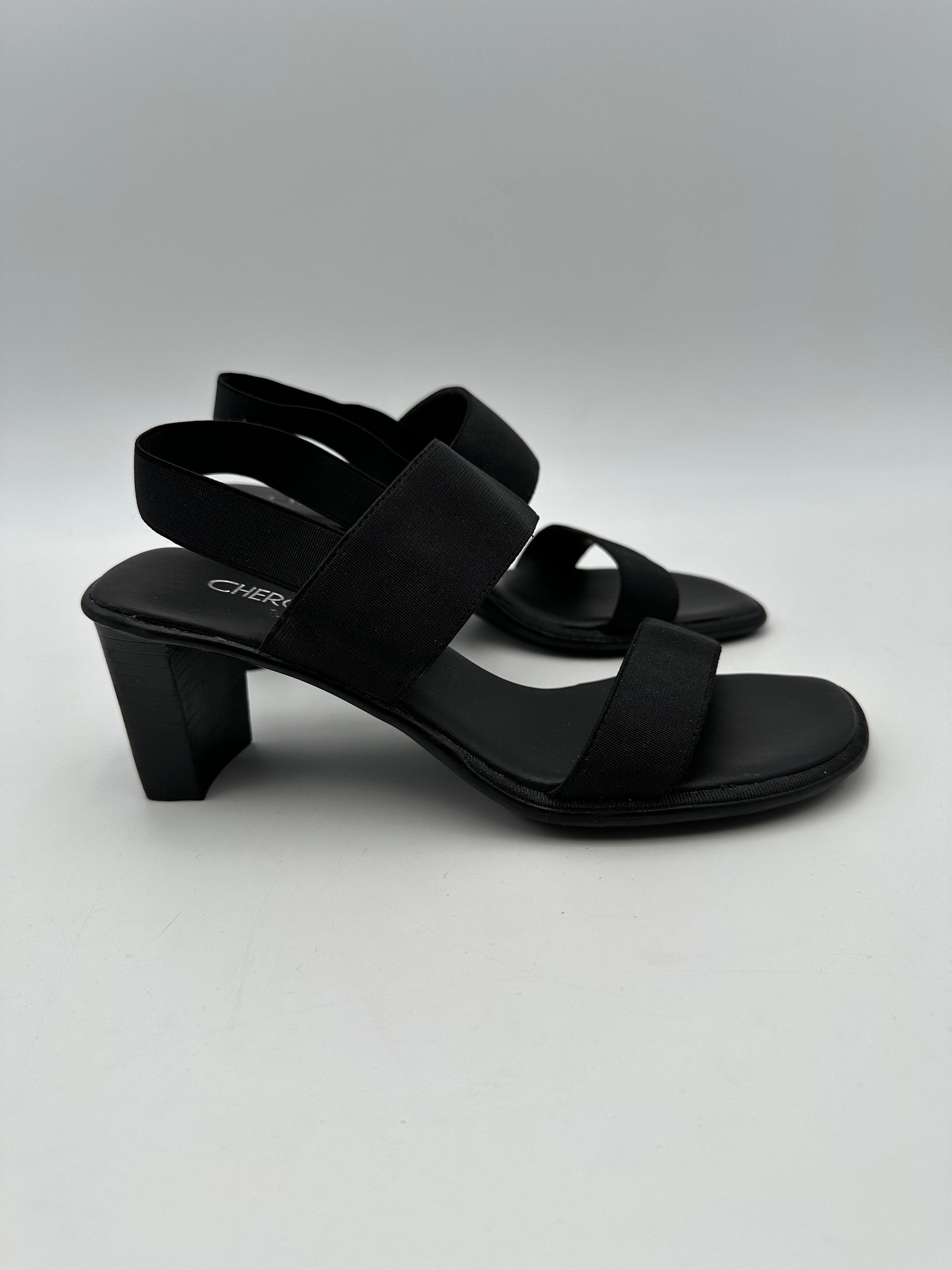 Cherokee Size 7 Black Elastic Band Slip-On Heel Sandals