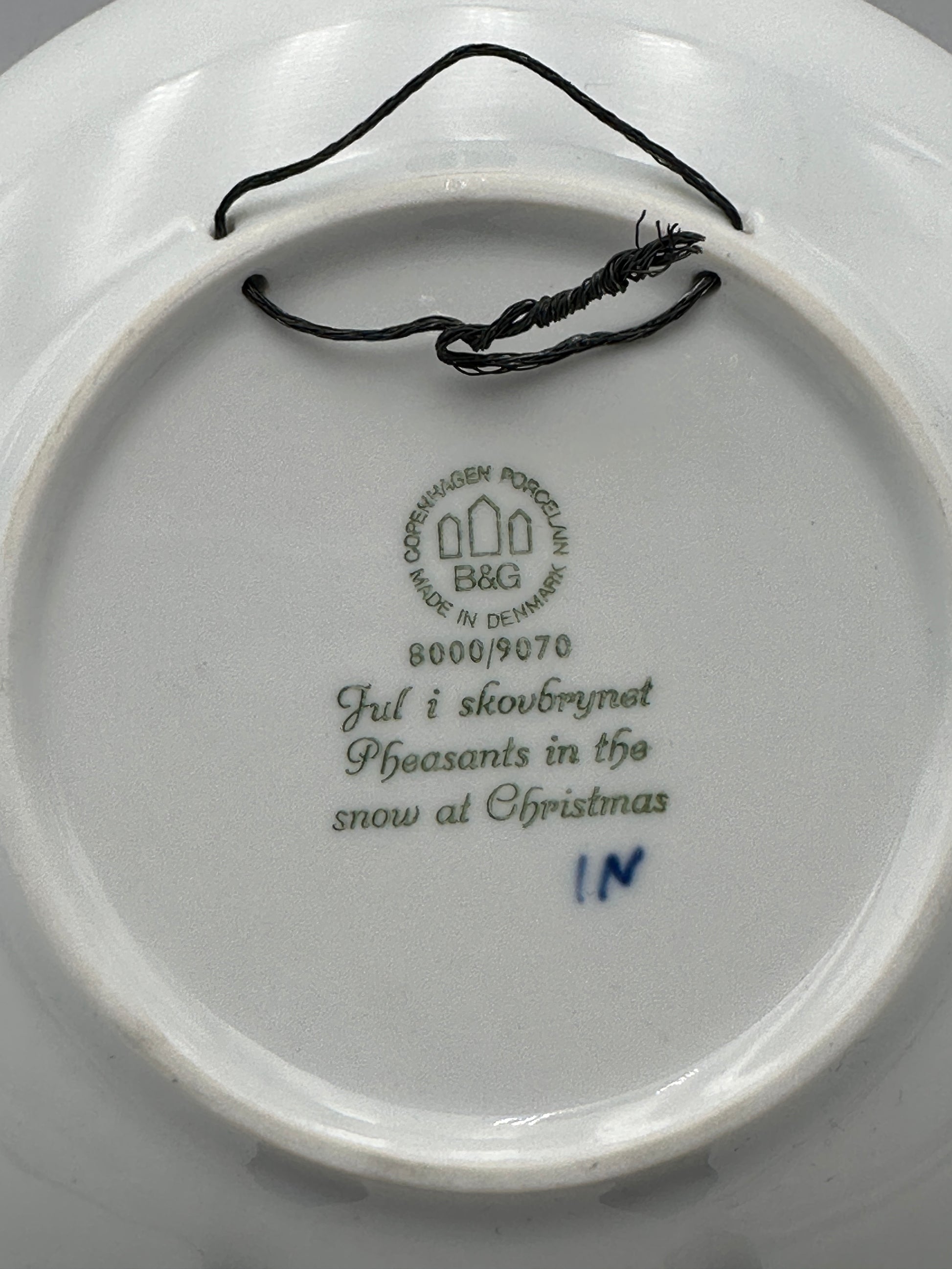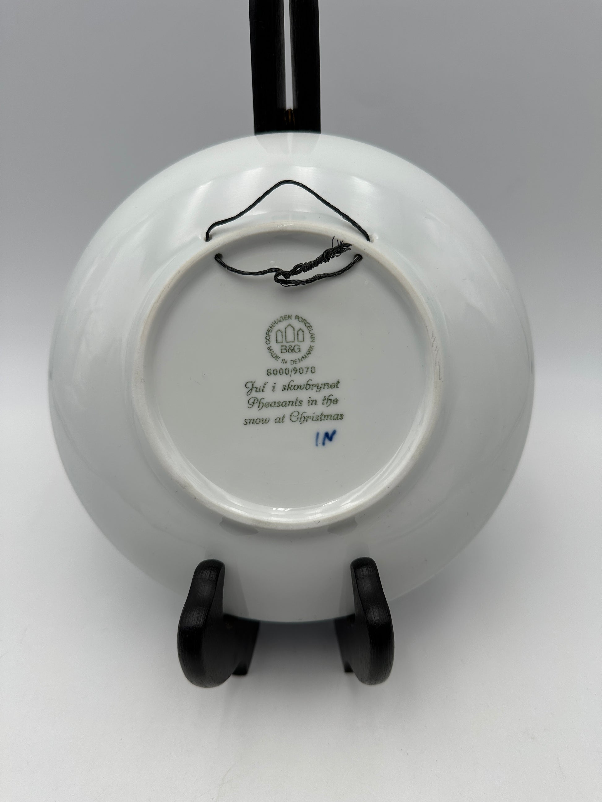 Bing & Grondahl Blue & White "Pheasants in the snow at Christmas" Vintage Collector Plate