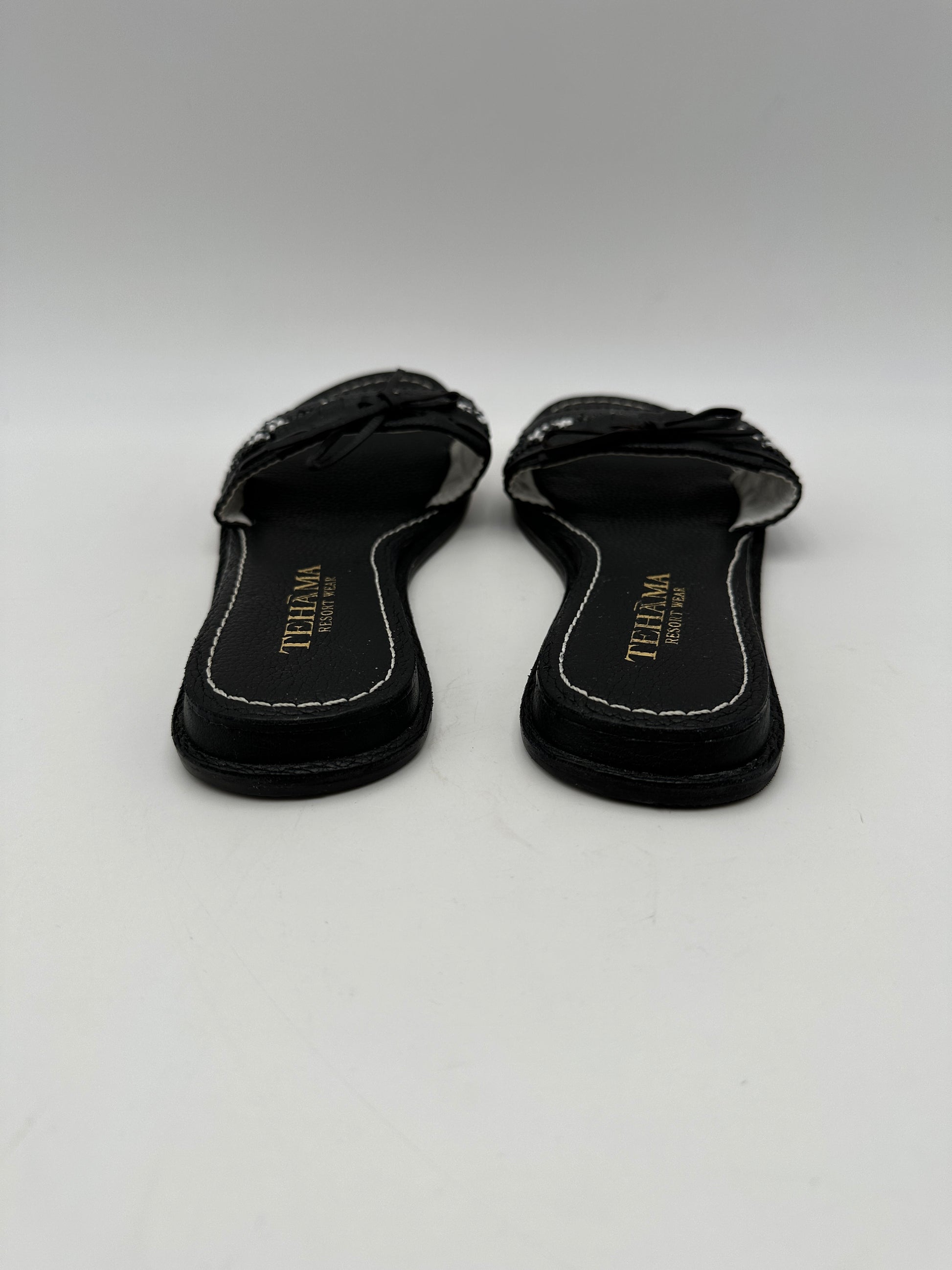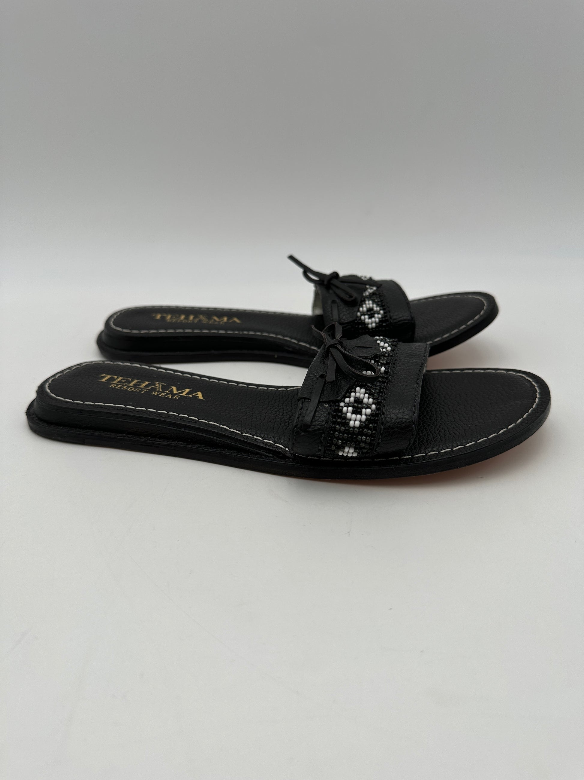 Tehama Resort Wear Size 7 M Black Leather Slip-On Flat Sandals
