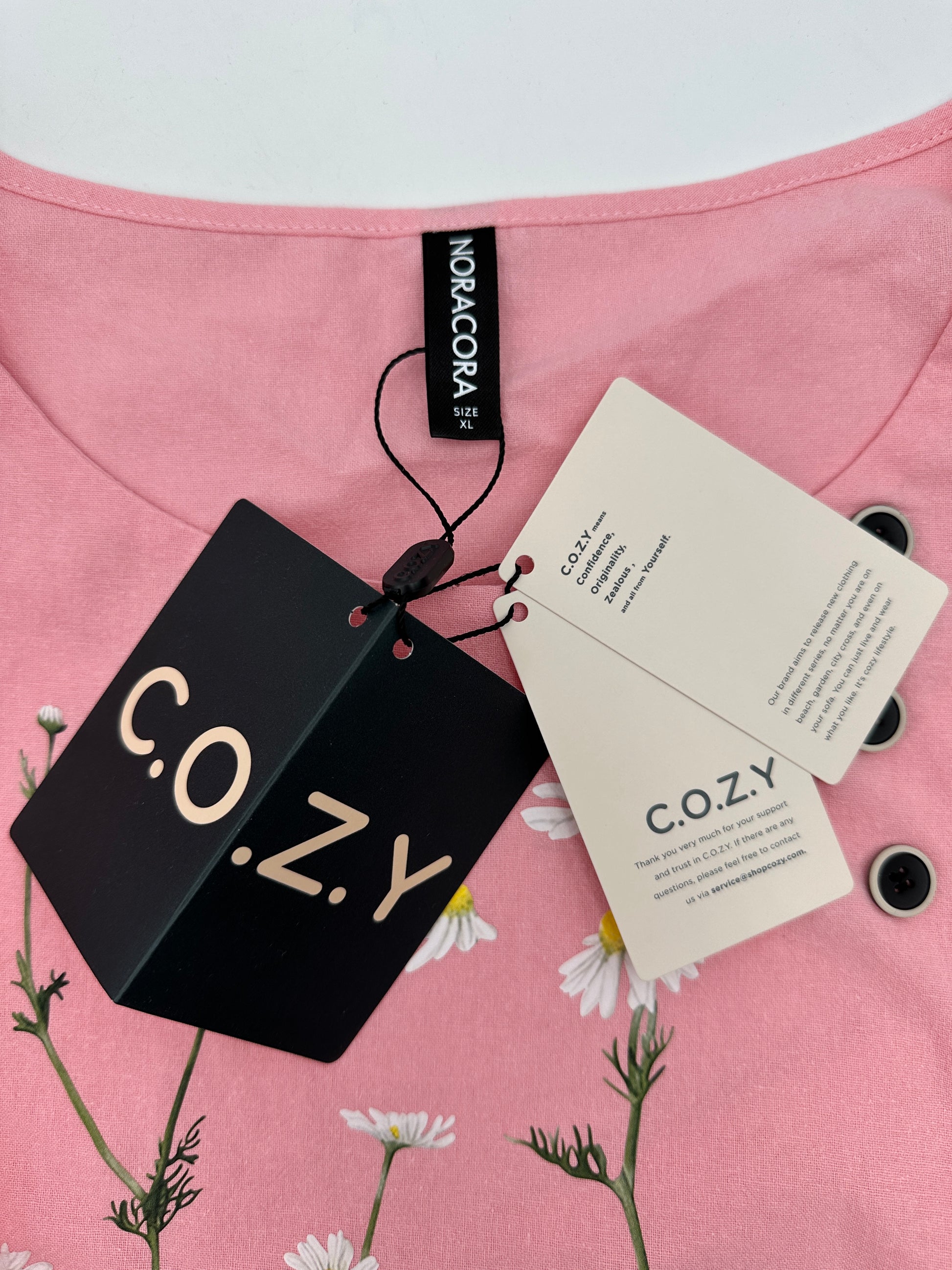 Noracora Size XL Light Pink w/Daisies Long Sleeve Top, new/NWT