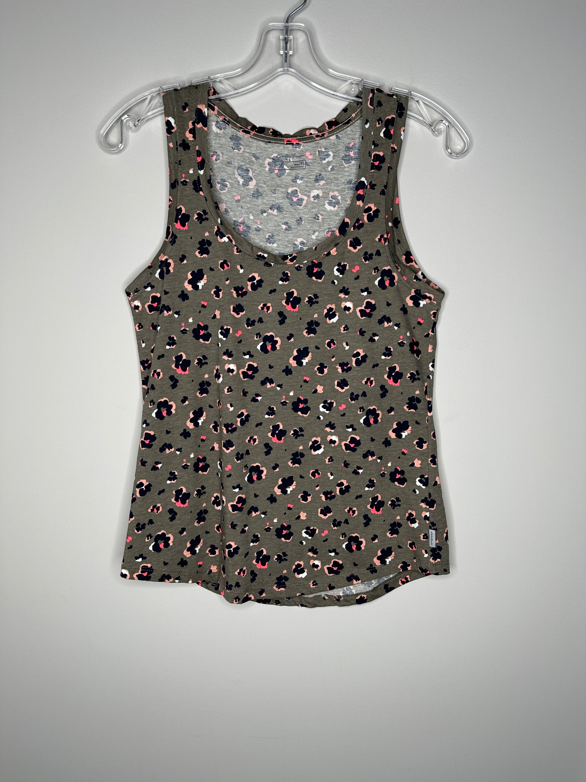 Eddie Bauer Size XS Olive Green with Flowers Scoop Tank Top