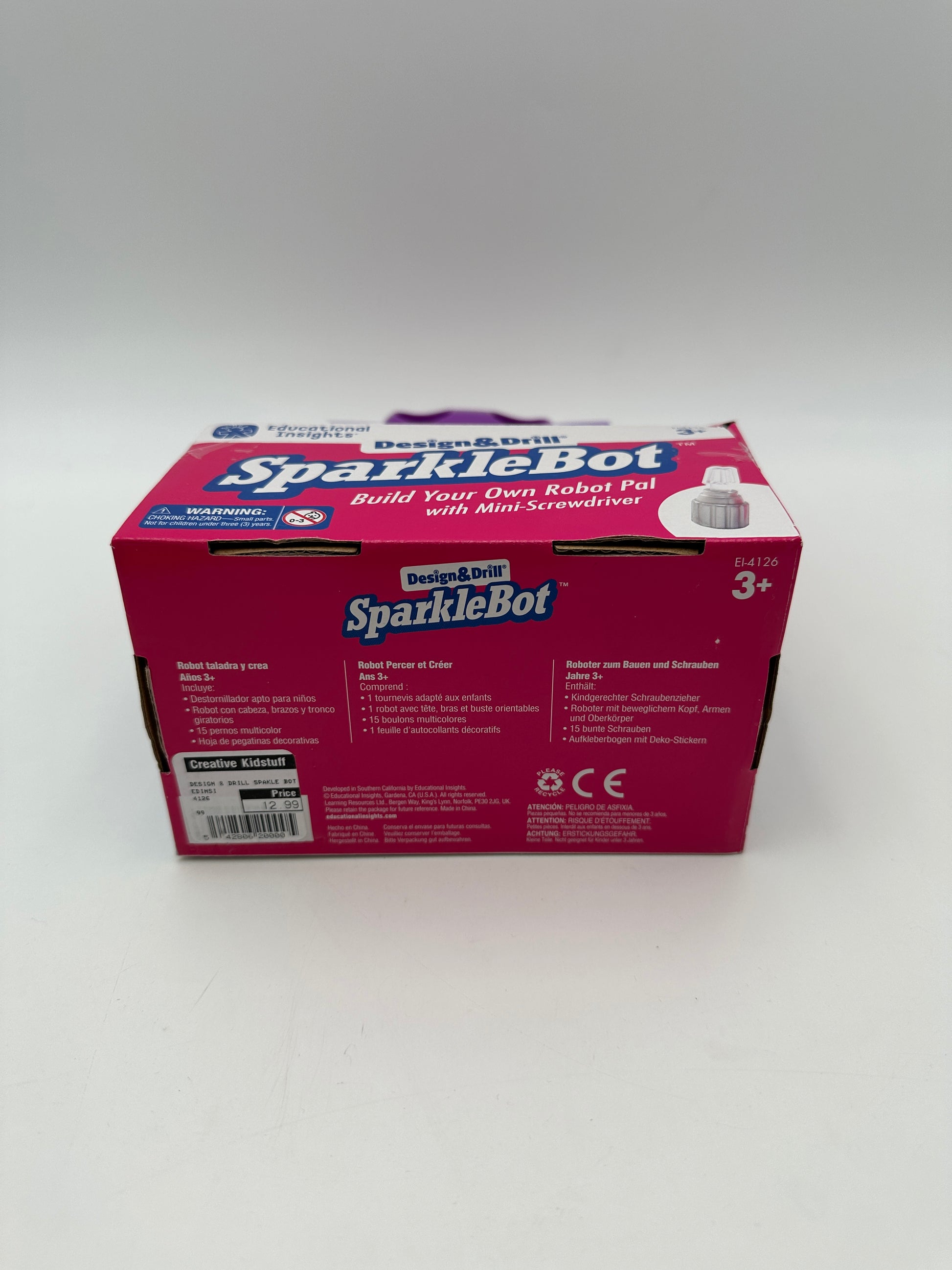 Description : Includes an 8" SparkleBot robot with swiveling head, arms and upper body; 15 colorful bolts; kid-safe mini screwdriver and stickers. New, for ages 3+
