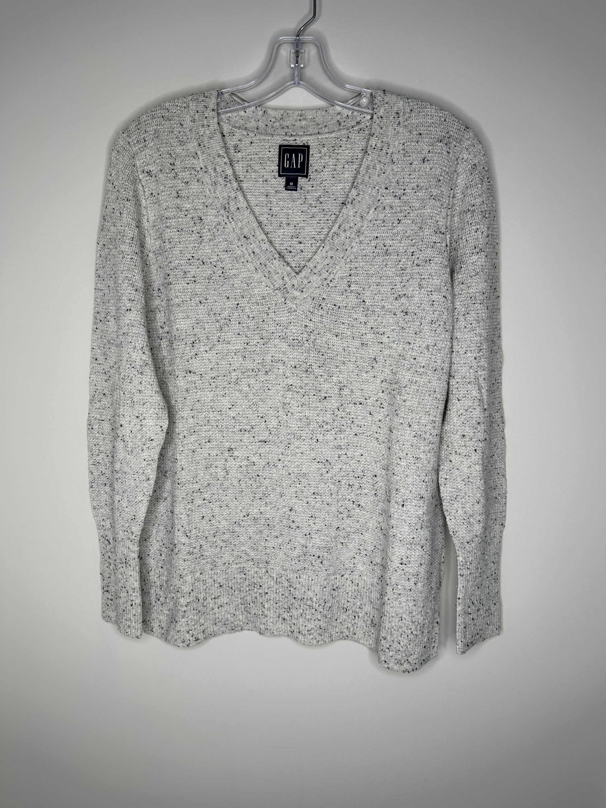 GAP Size M Light Gray w/Black Fleck V-Neck Sweater