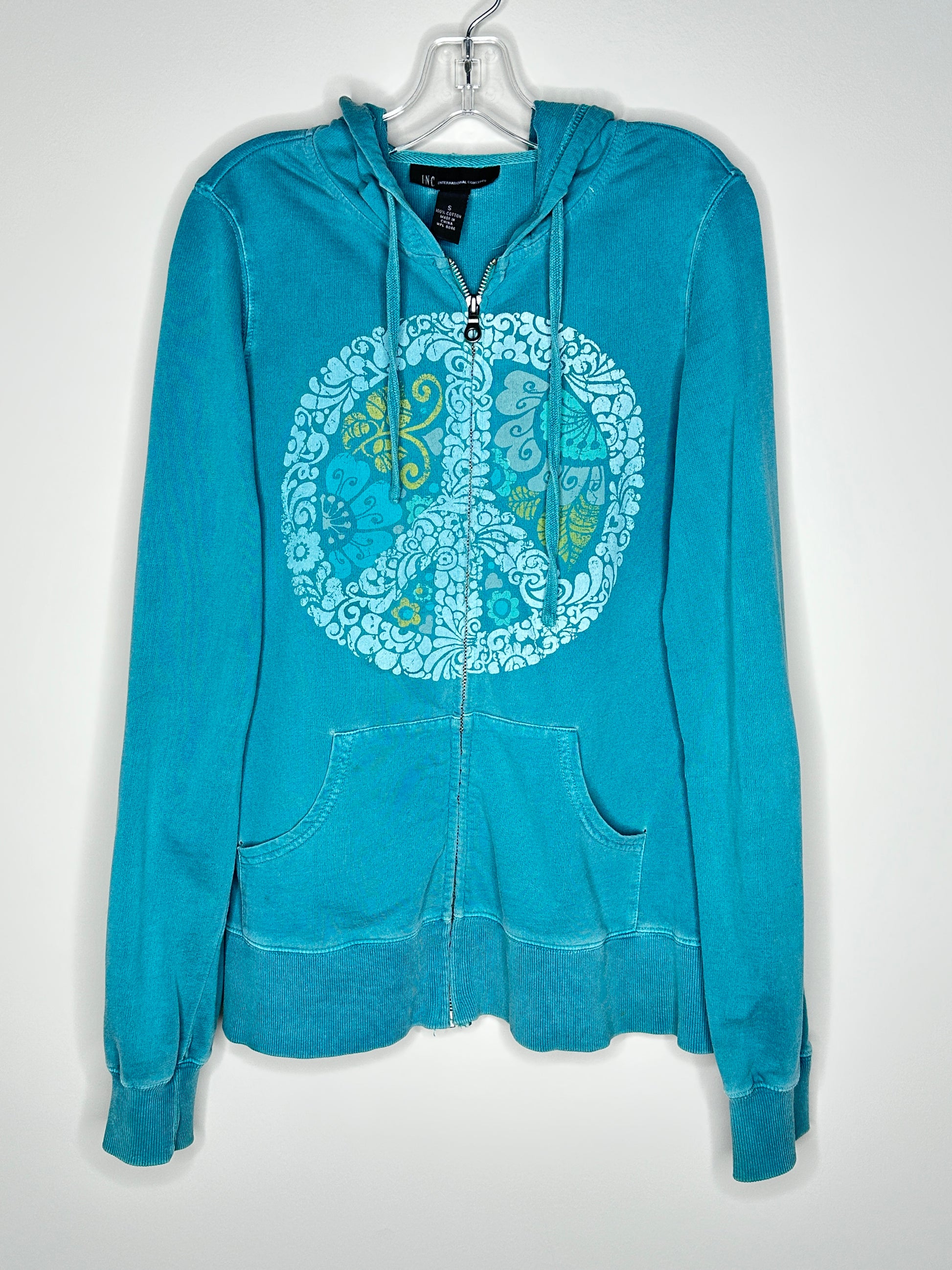 INC International Concepts Size S Teal Full-Zip Hoodie