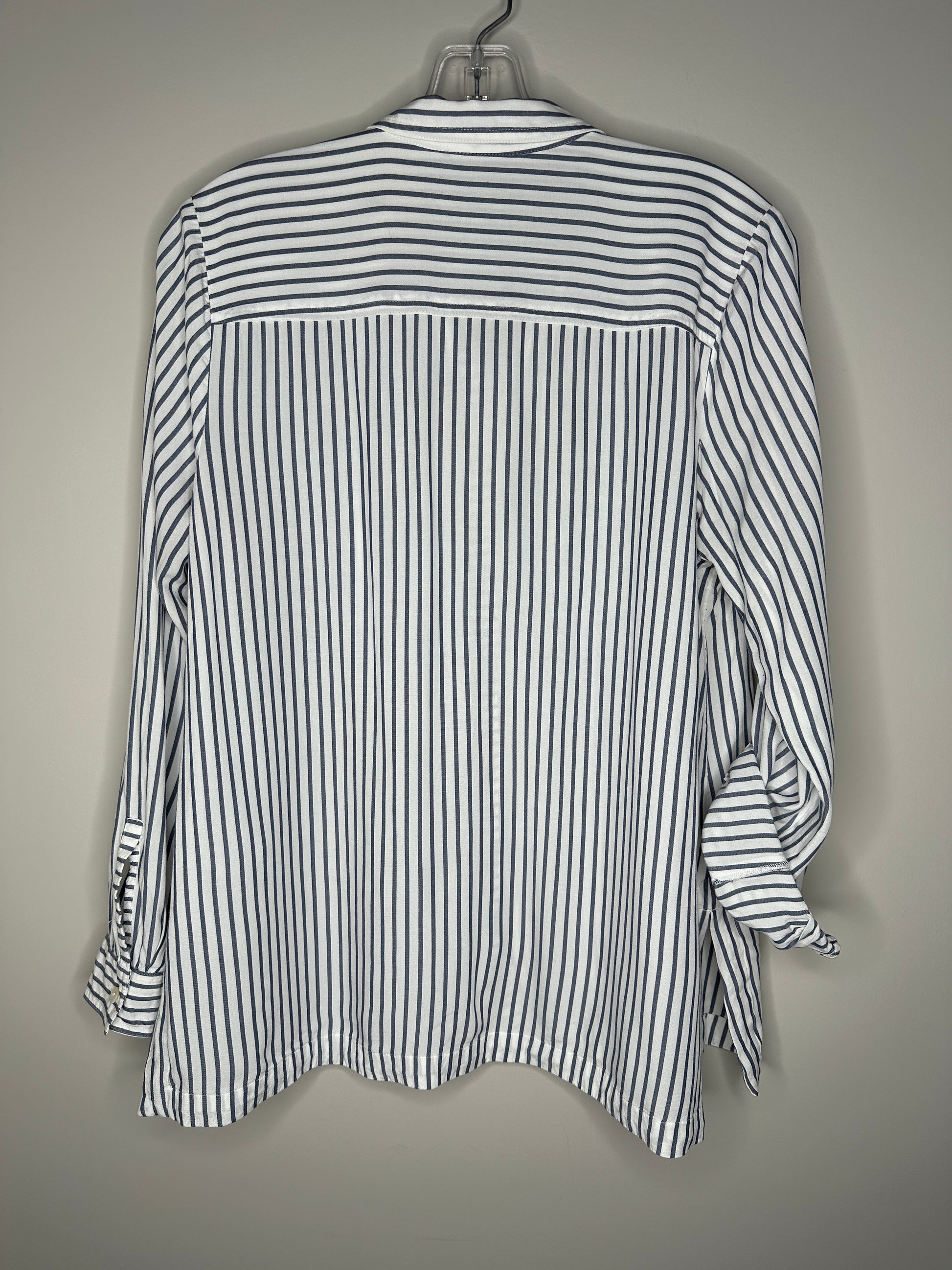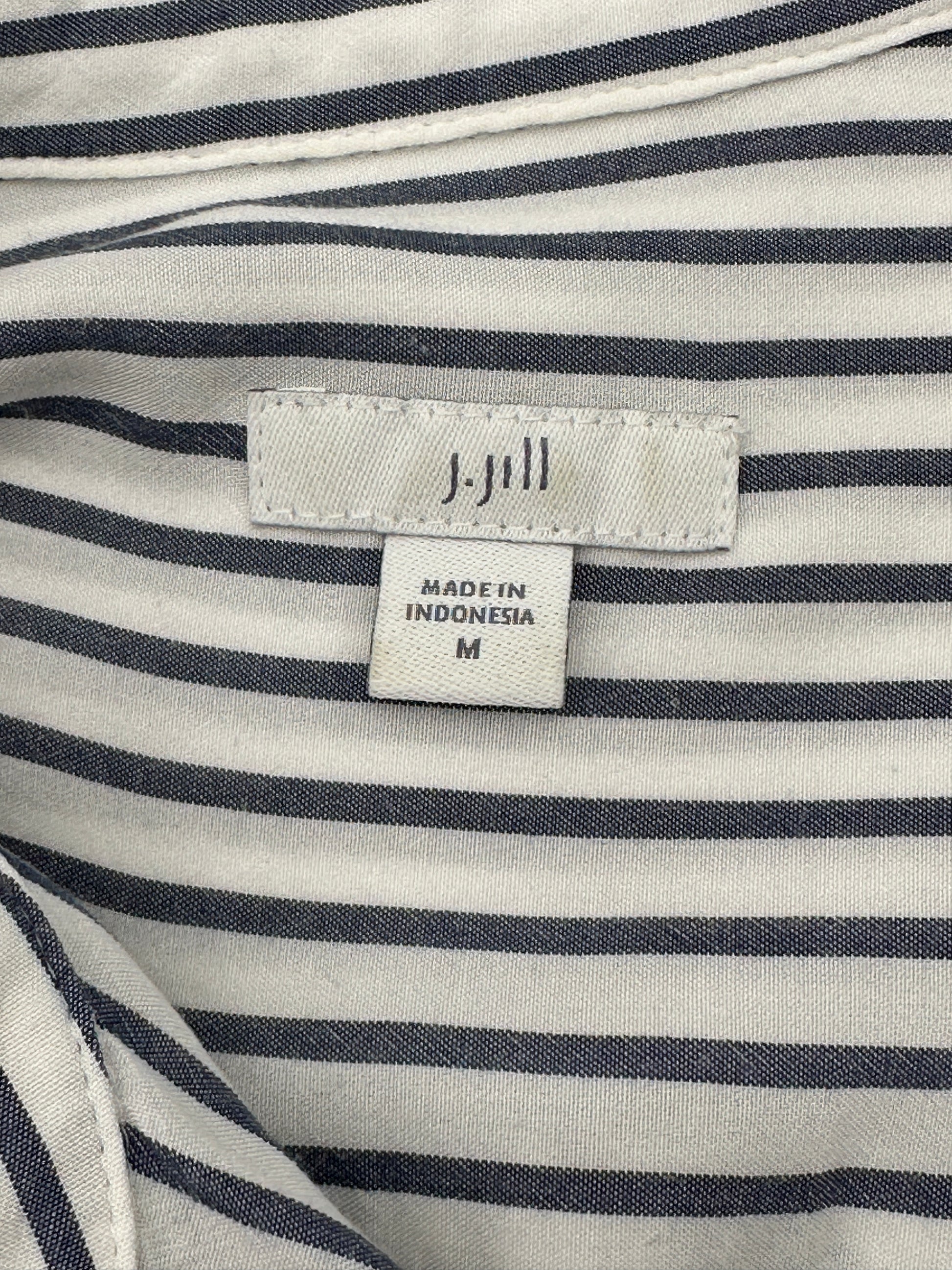 J.Jill Size M Blue & White Striped Roll-Tab Sleeve Blouse Button-Up Top