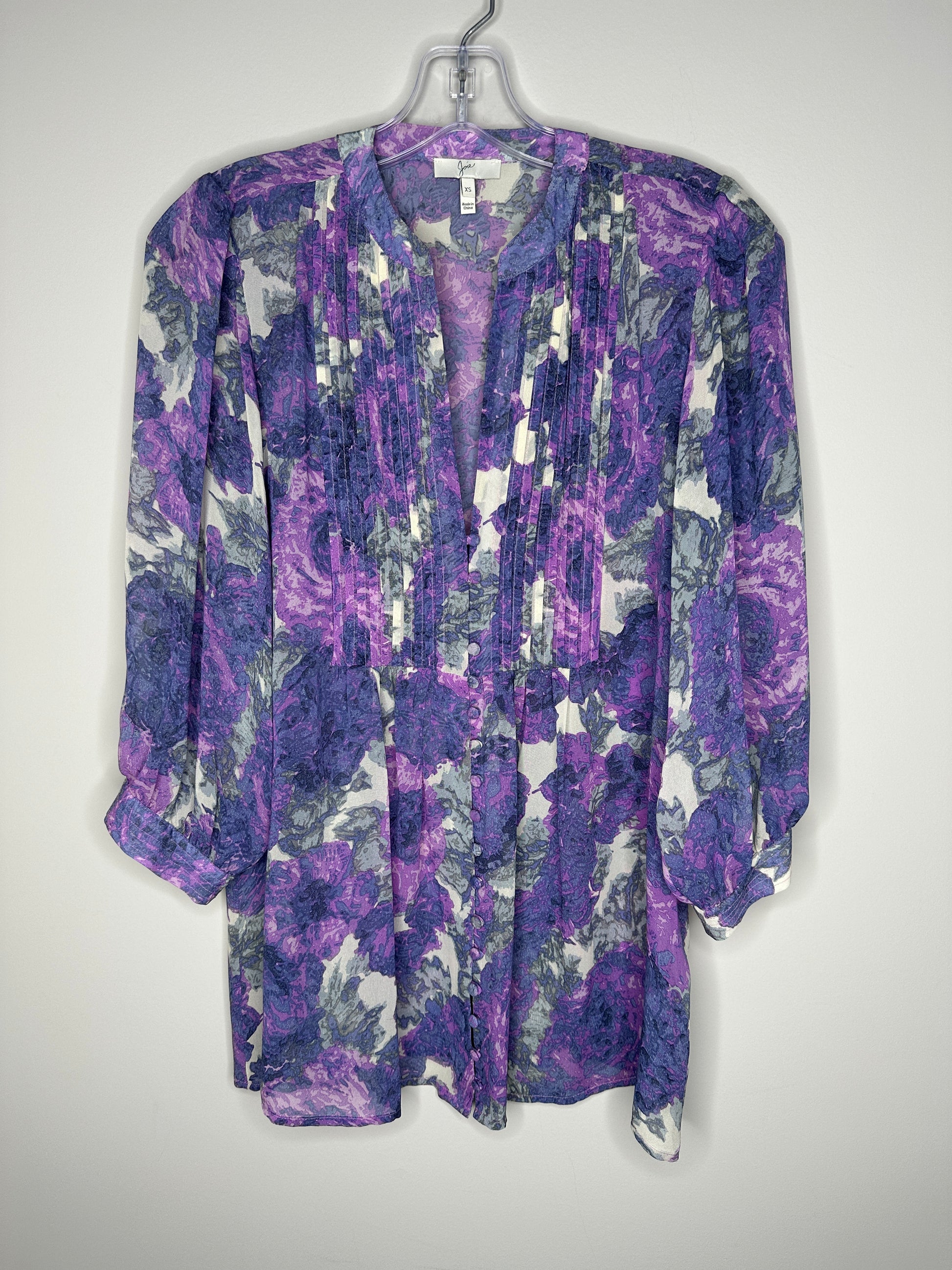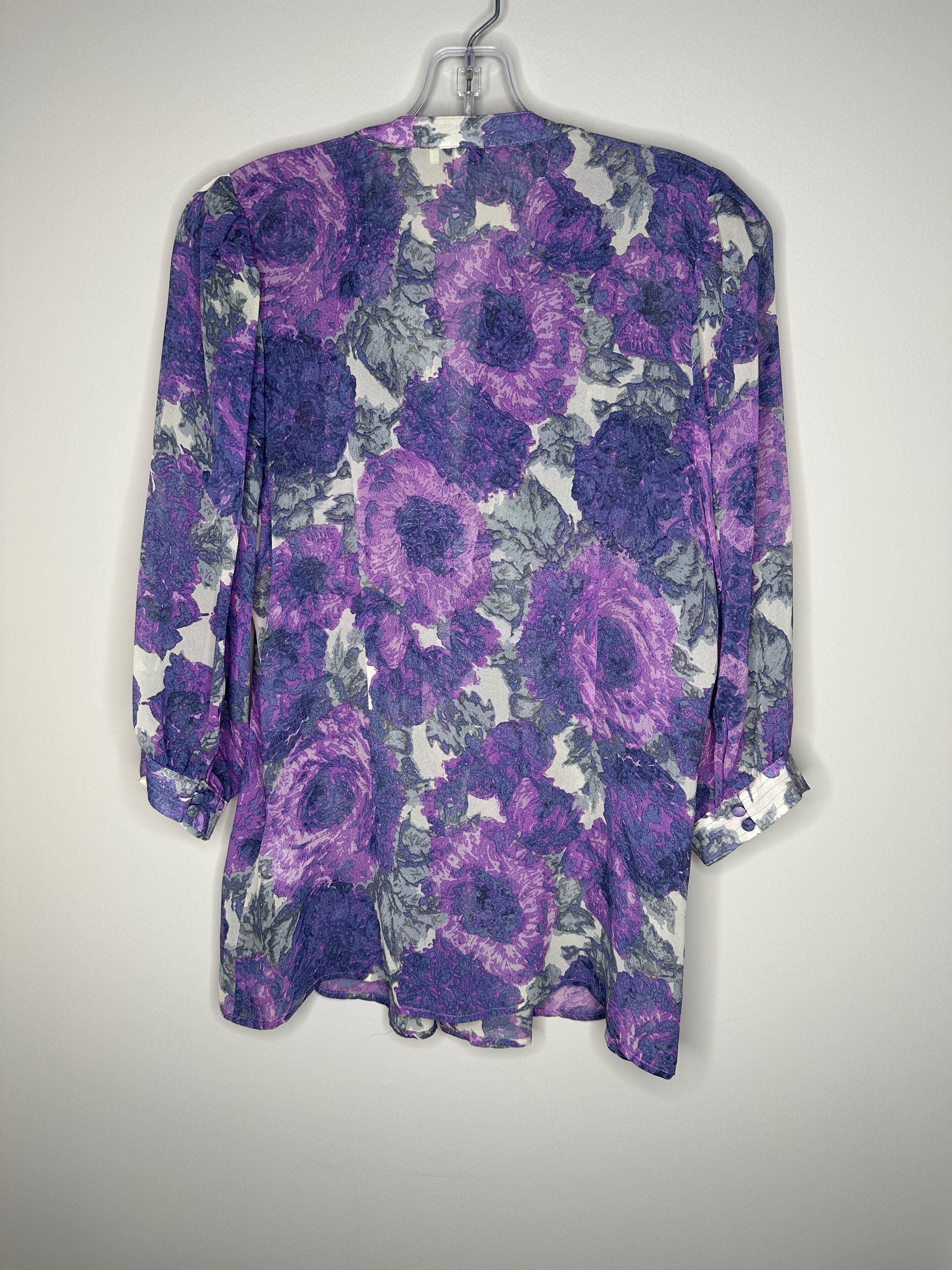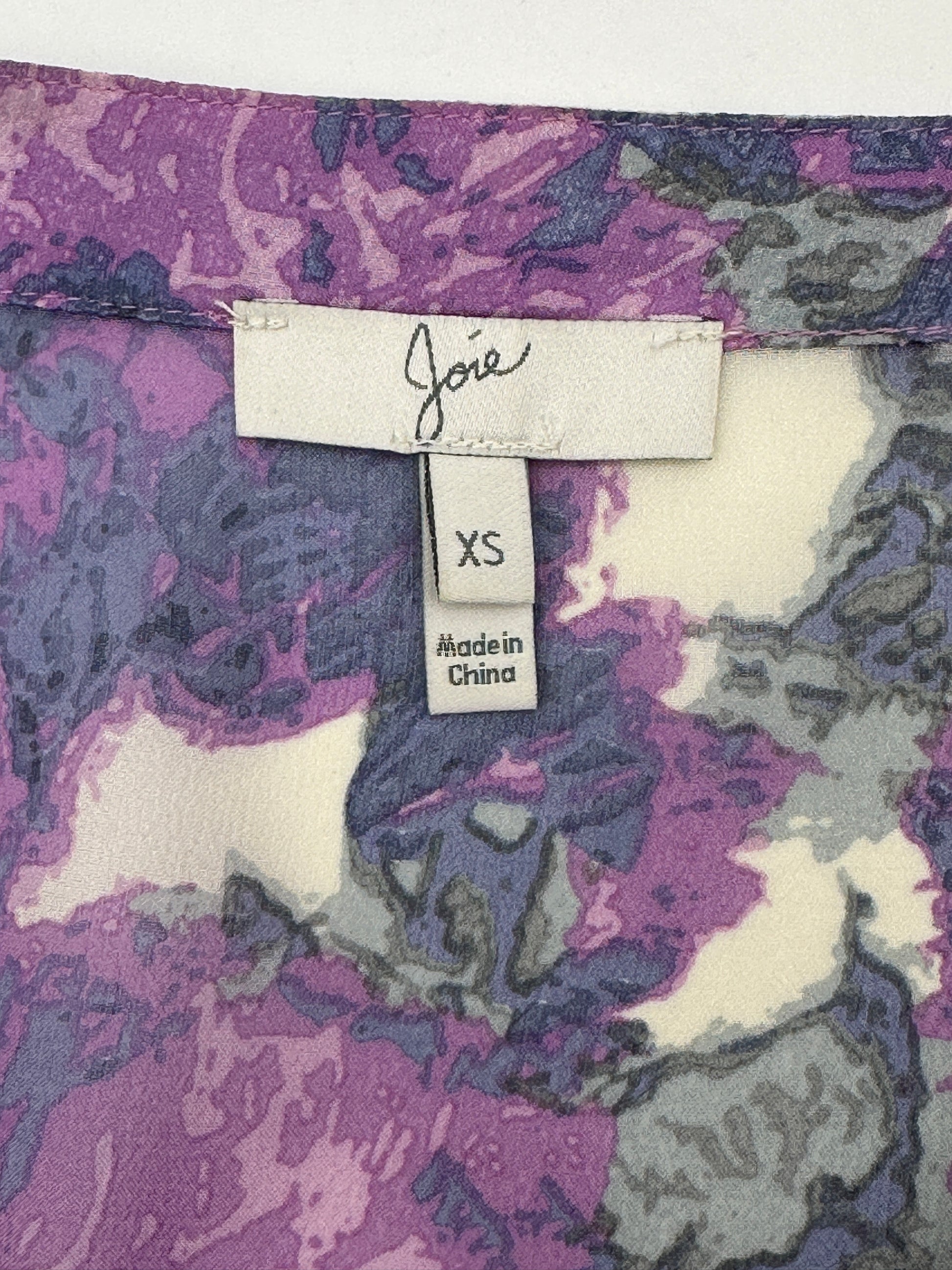 Joie Size XS Purple & Gray Floral 3/4 Sleeve Silk Blouse, EUC (runs large - please see meas.)