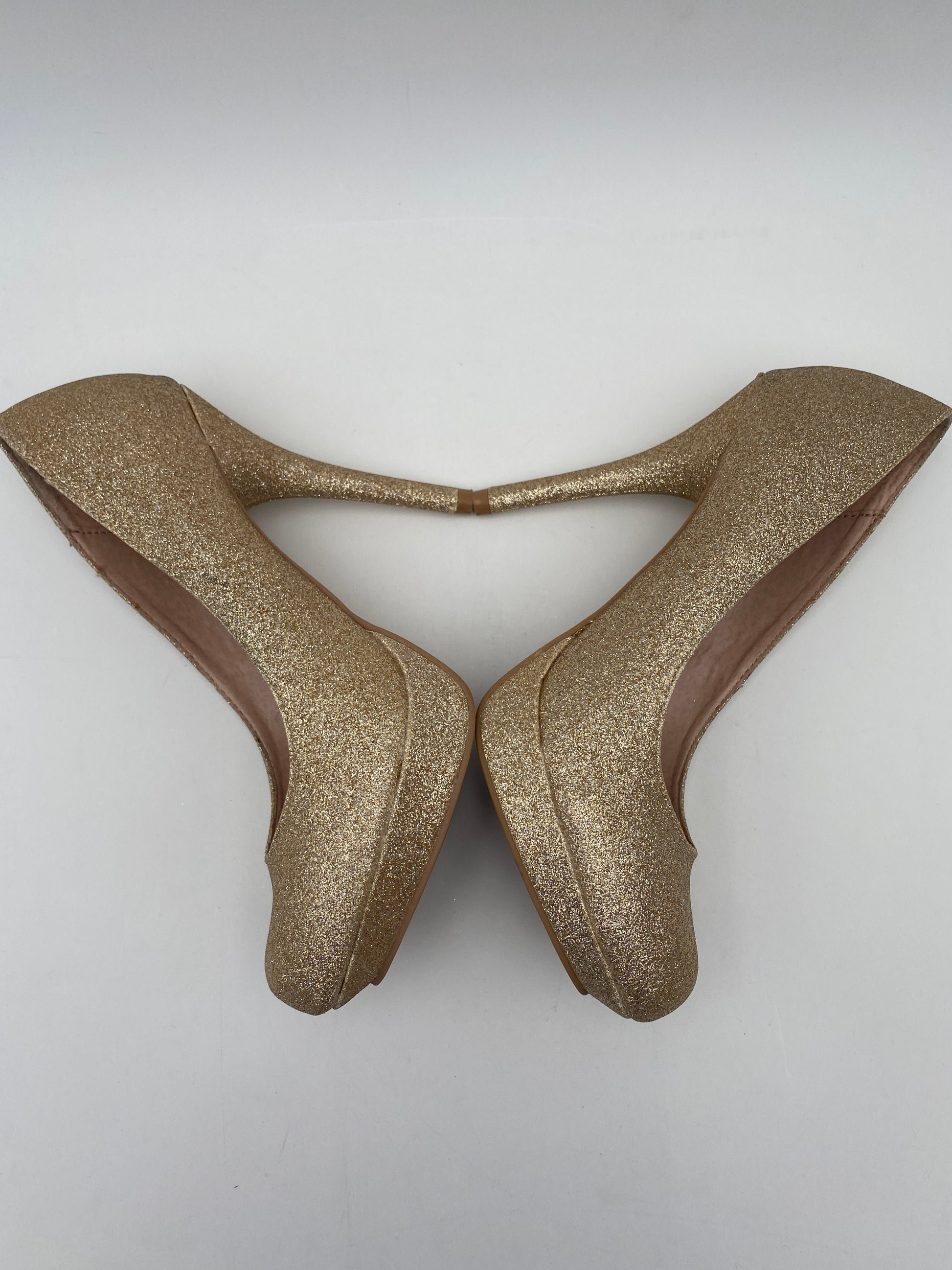 Olsenboye Size 7.5 M Gold Glitter OPepper Platform Pumps, 4.5" heel