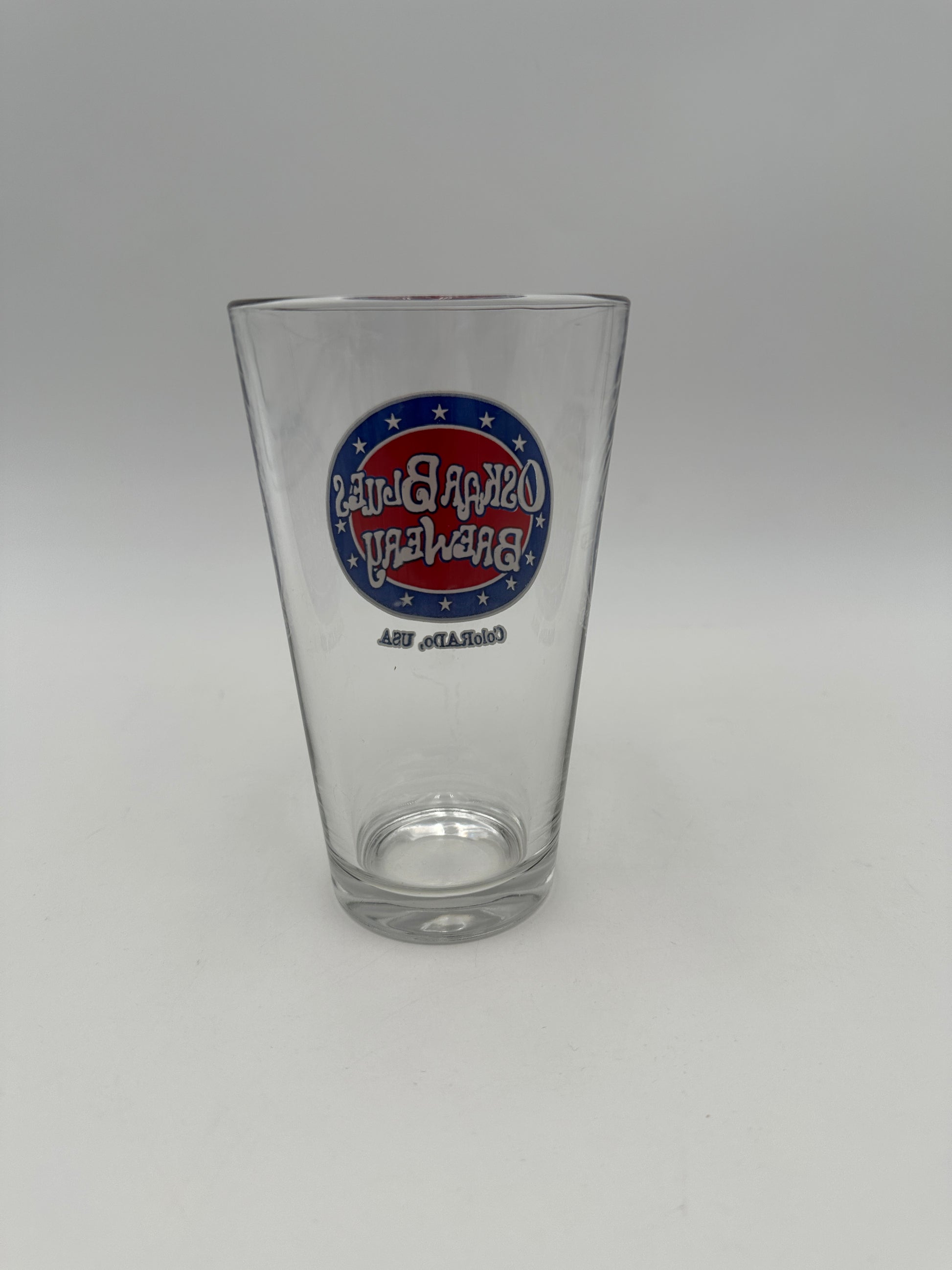 Description : With a red, white and blue screened logo on one side, "Oskar Blues Brewery | Colorado, USA" approx. 3.25" diameter at the top, 5.75" tall, collectible beer glass