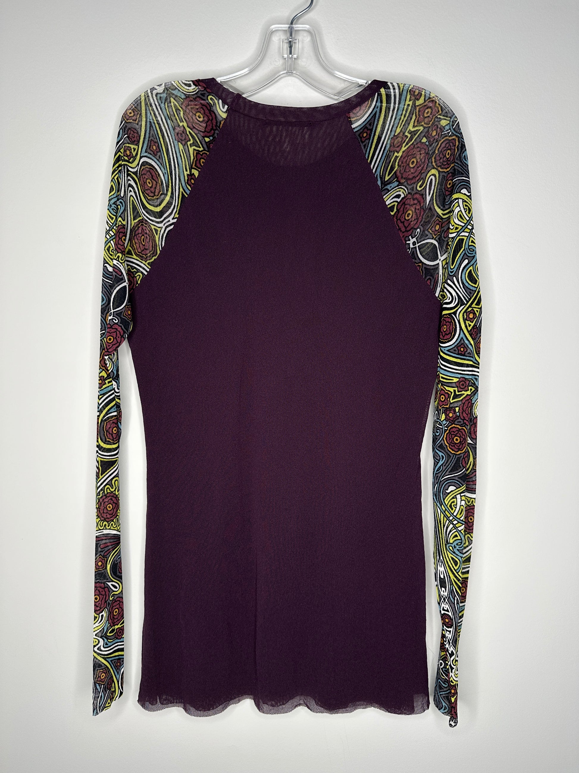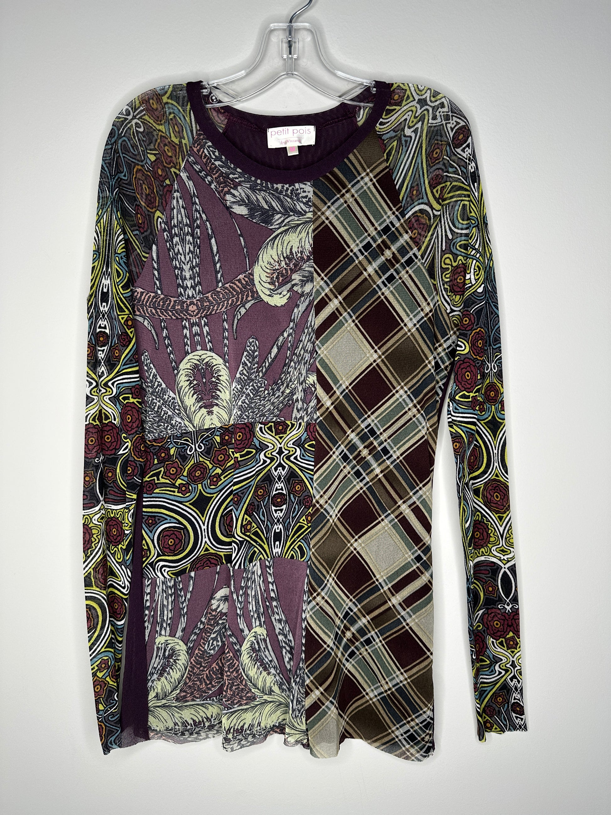 Petit Pois by Viviana Size M Plum Printed Long Sleeve Lightweight Top