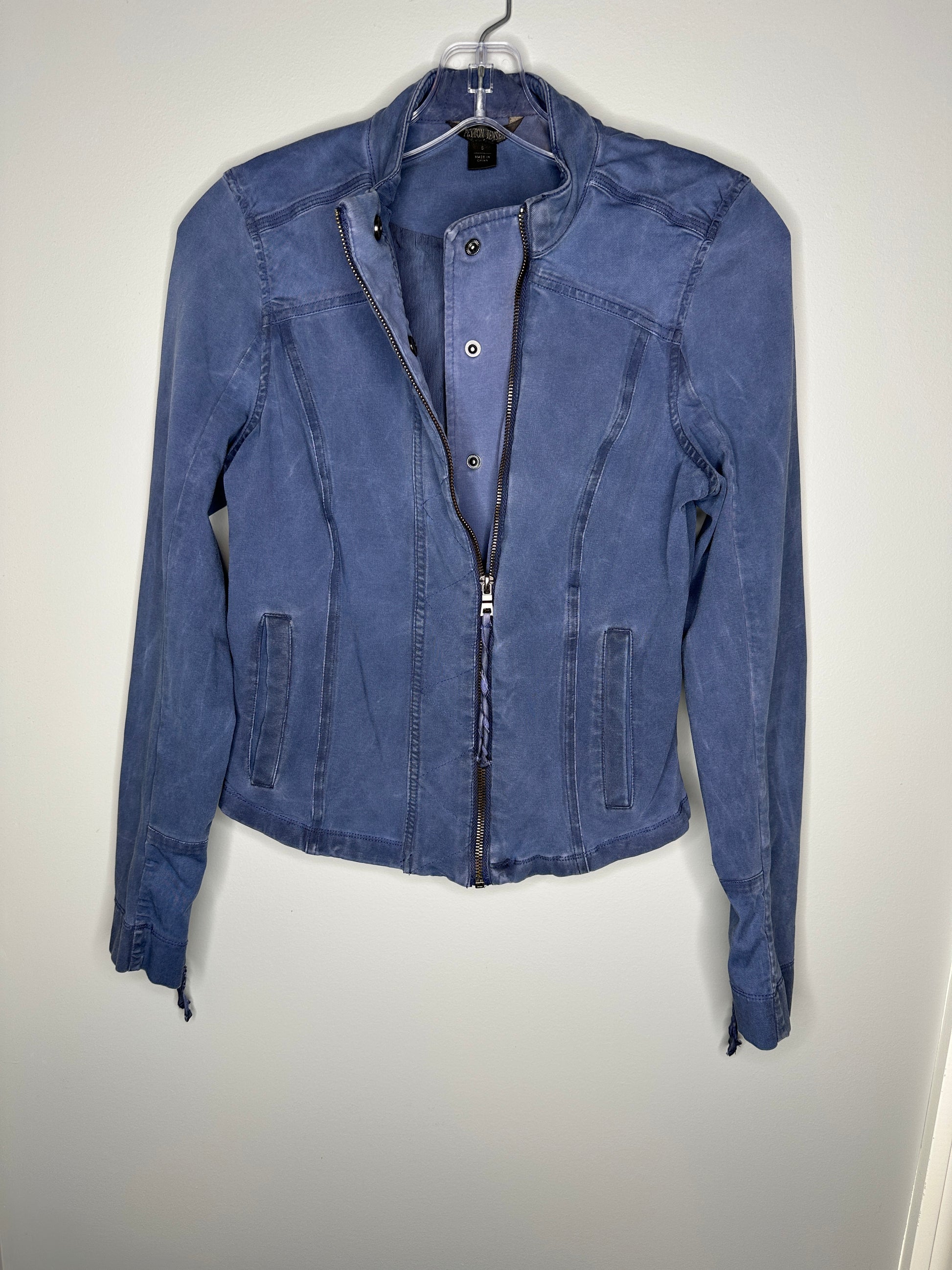 Peyton Jensen Size S Blue Full-Zip Moto Jacket Lightweight Jacket