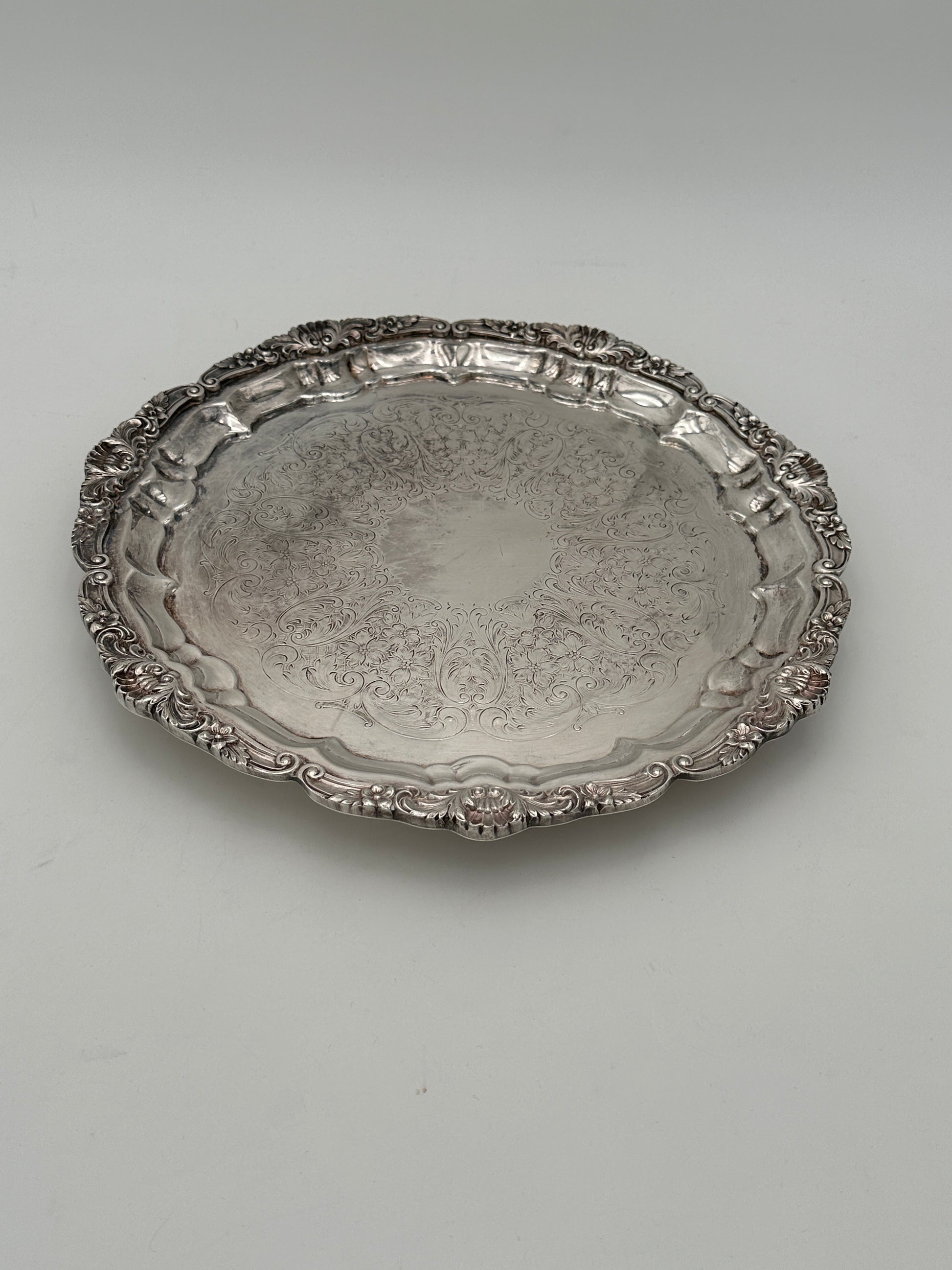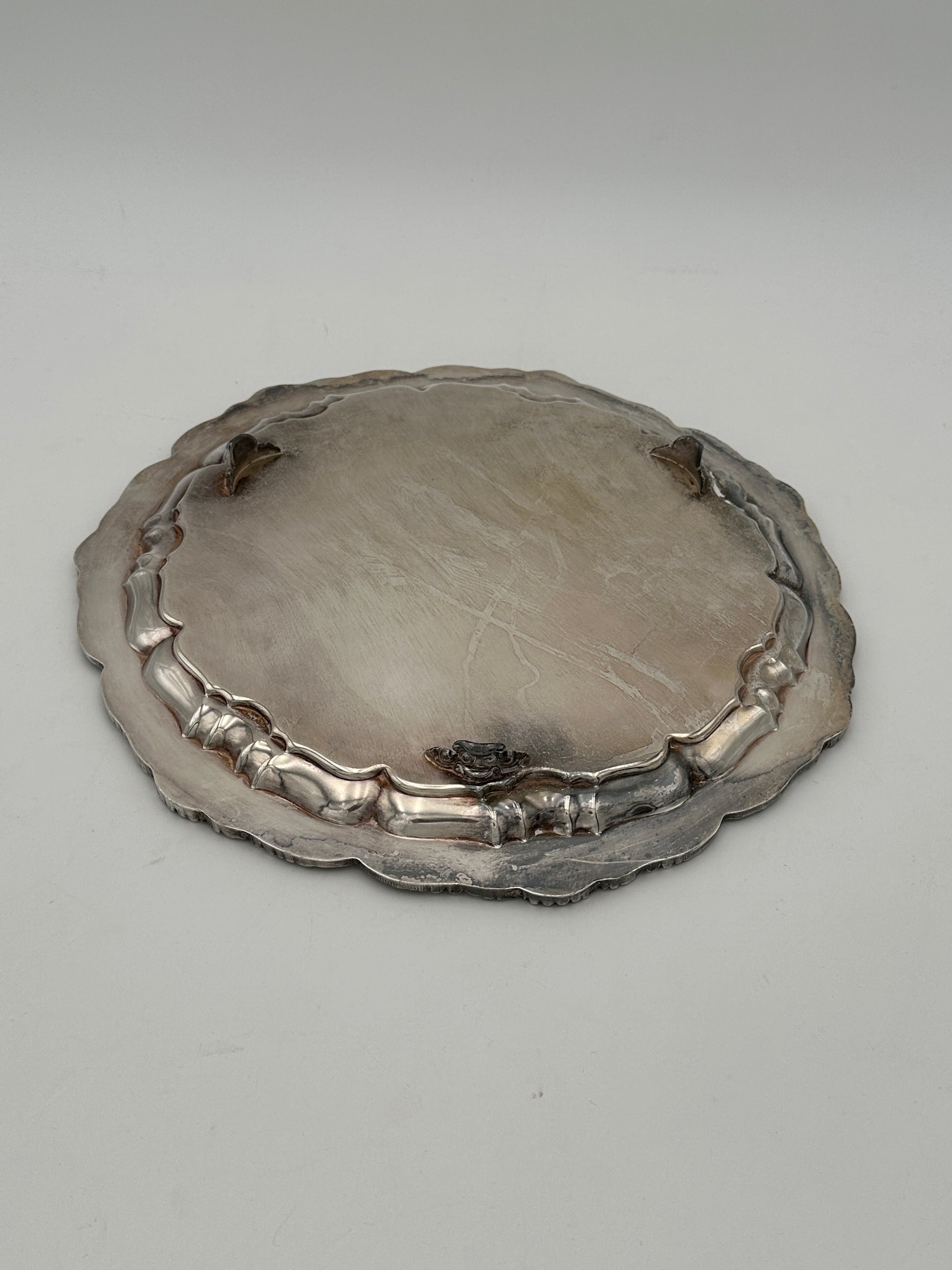 Description : Sturdy, with an ornate, scalloped-like edge, vintage. More photos are available upon request, more silver-plated pieces available