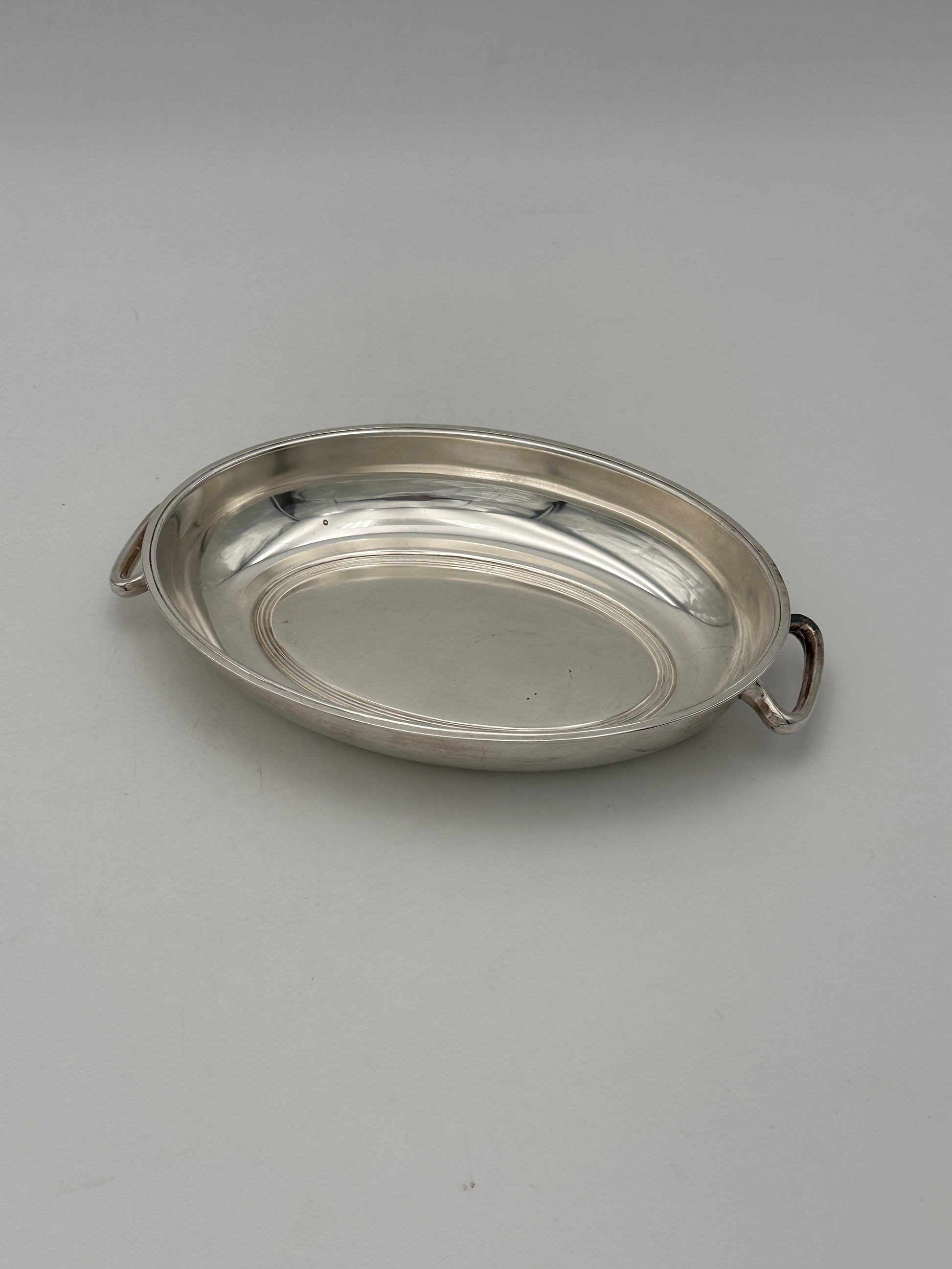Description : A sleek piece with a smooth edge and low handles. More photos are available upon request, more silver-plated pieces available
