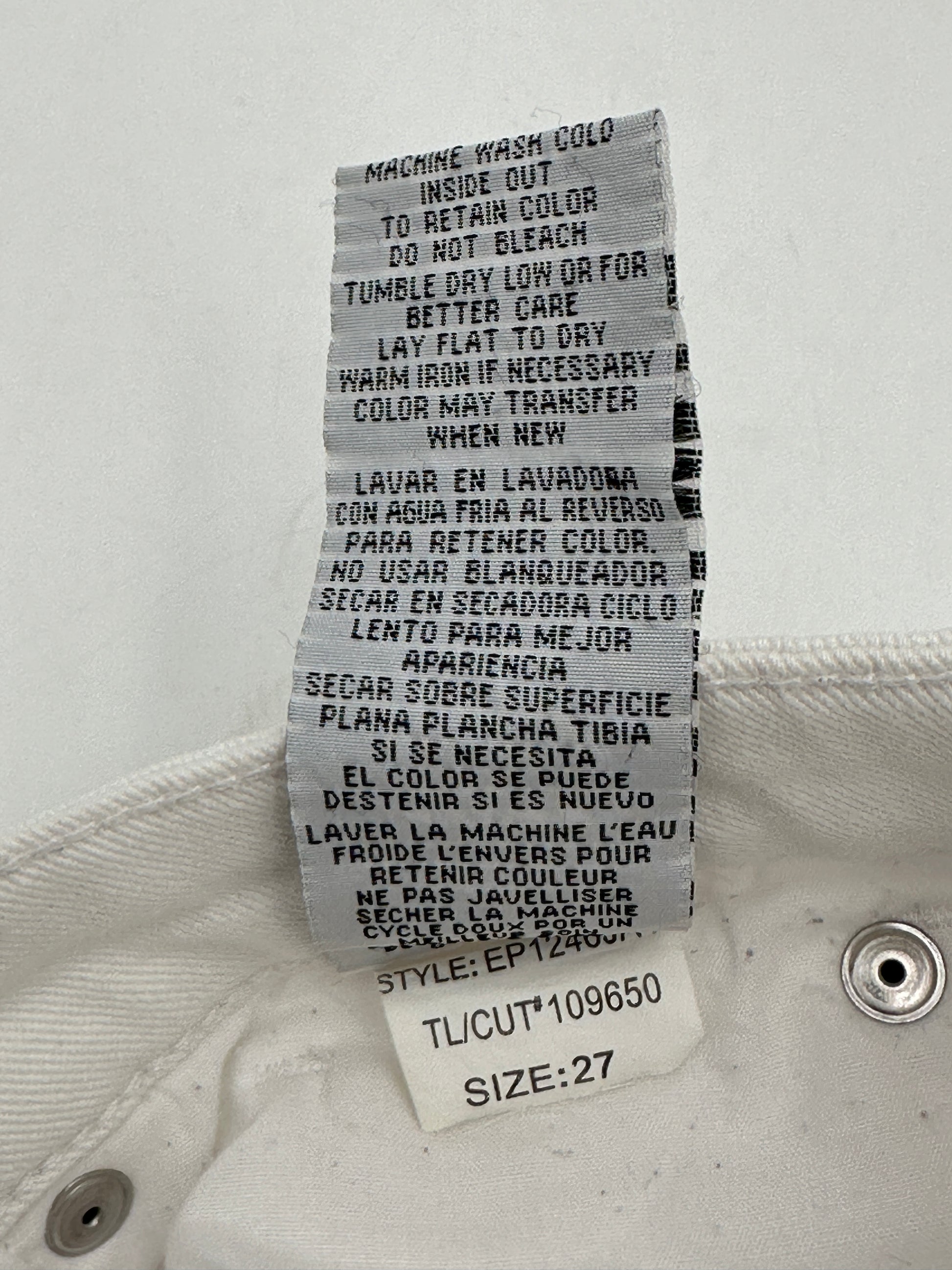 Description : A 5-pocket style with button fly and fringe frayed bottom and a bit of stretch. In versatile white