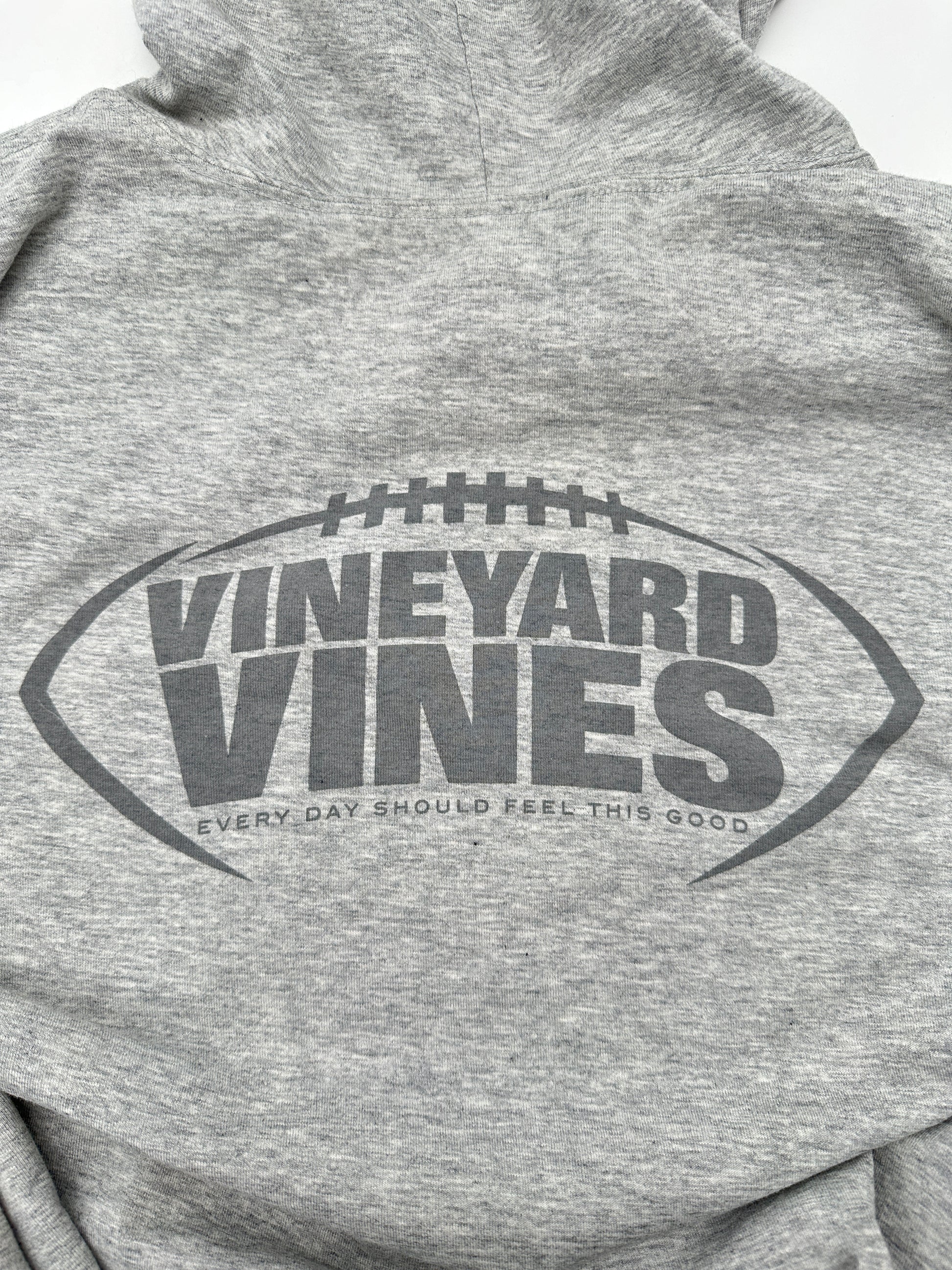 Vineyard Vines Men's Size XL Light Grey Football Laces Long-Sleeve Pullover Hoodie Pocket Tee