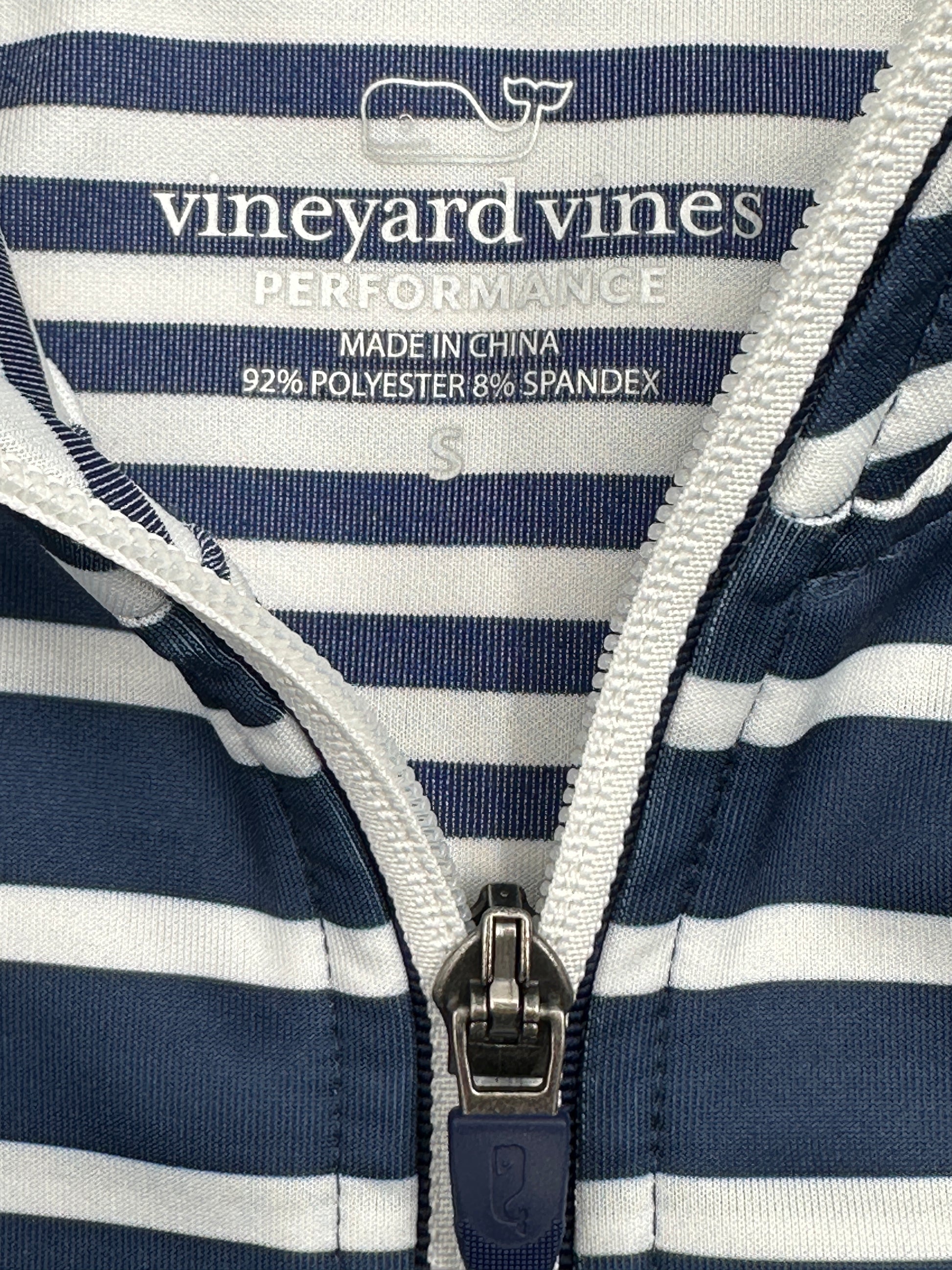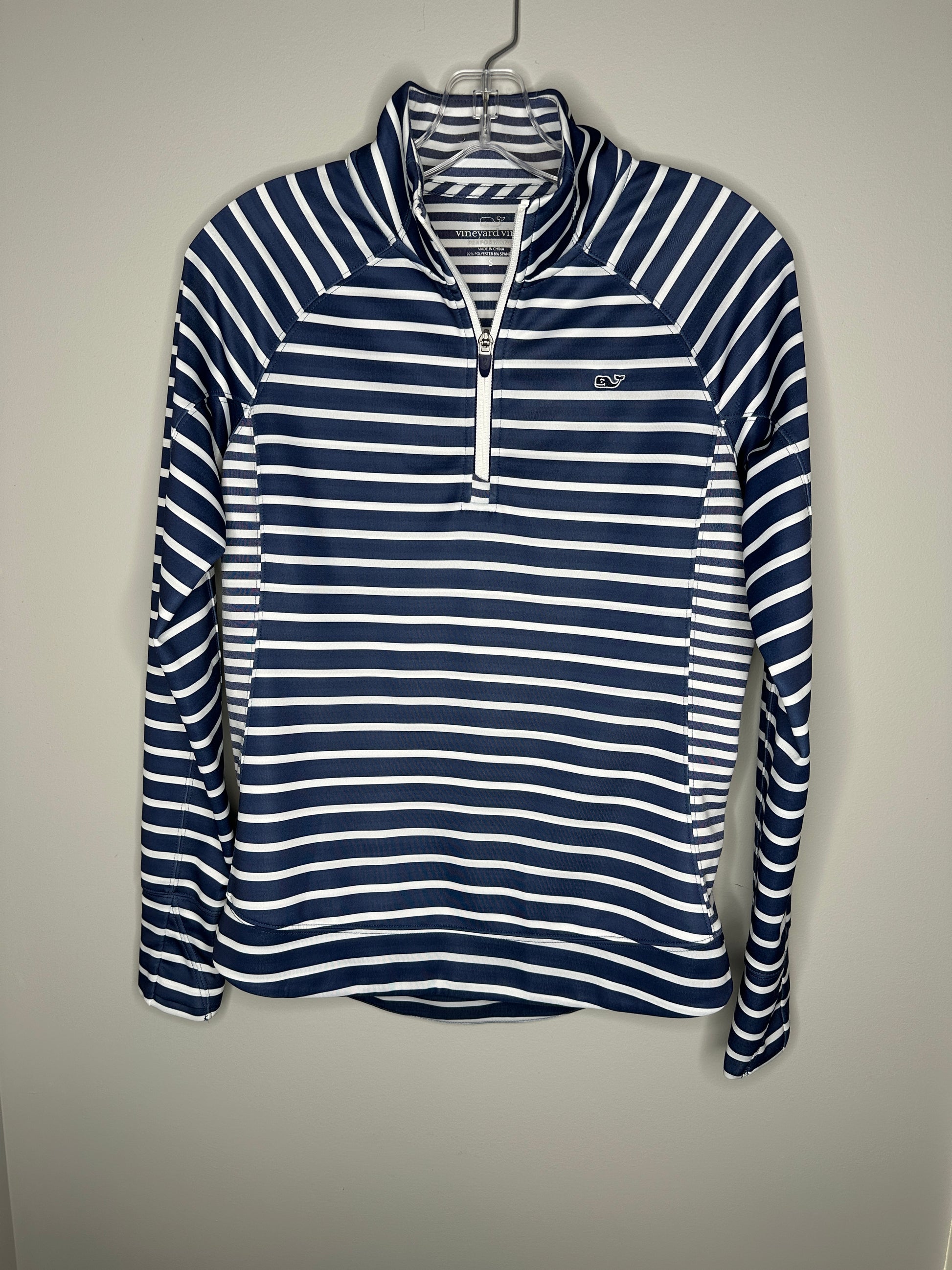 Vineyard Vines Performance Size S Blue & White Striped 1/4 Zip Top
