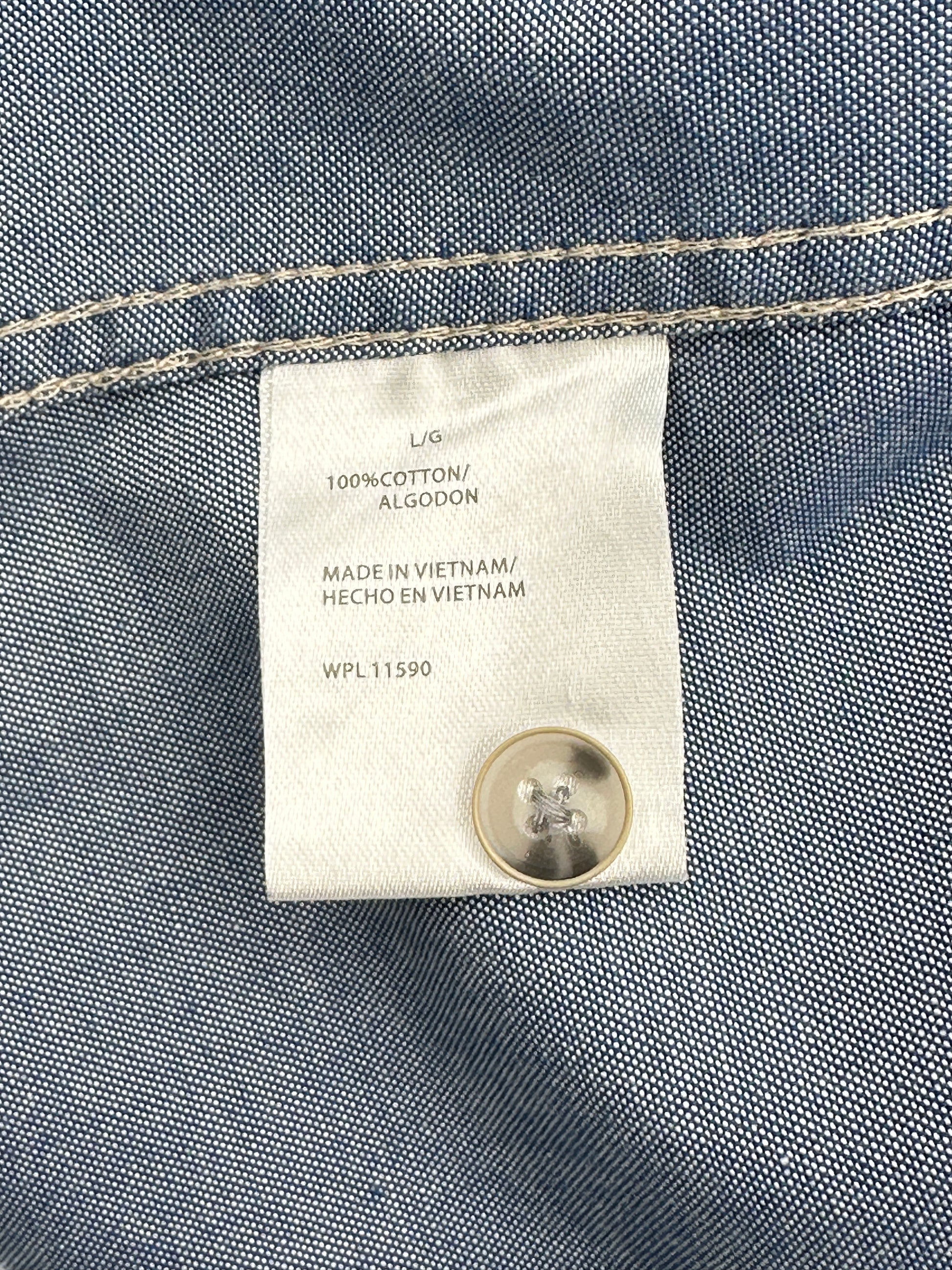 Weatherproof Vintage Size L Blue Chambray "Indeed Brewing" Long Sleeve Shirt